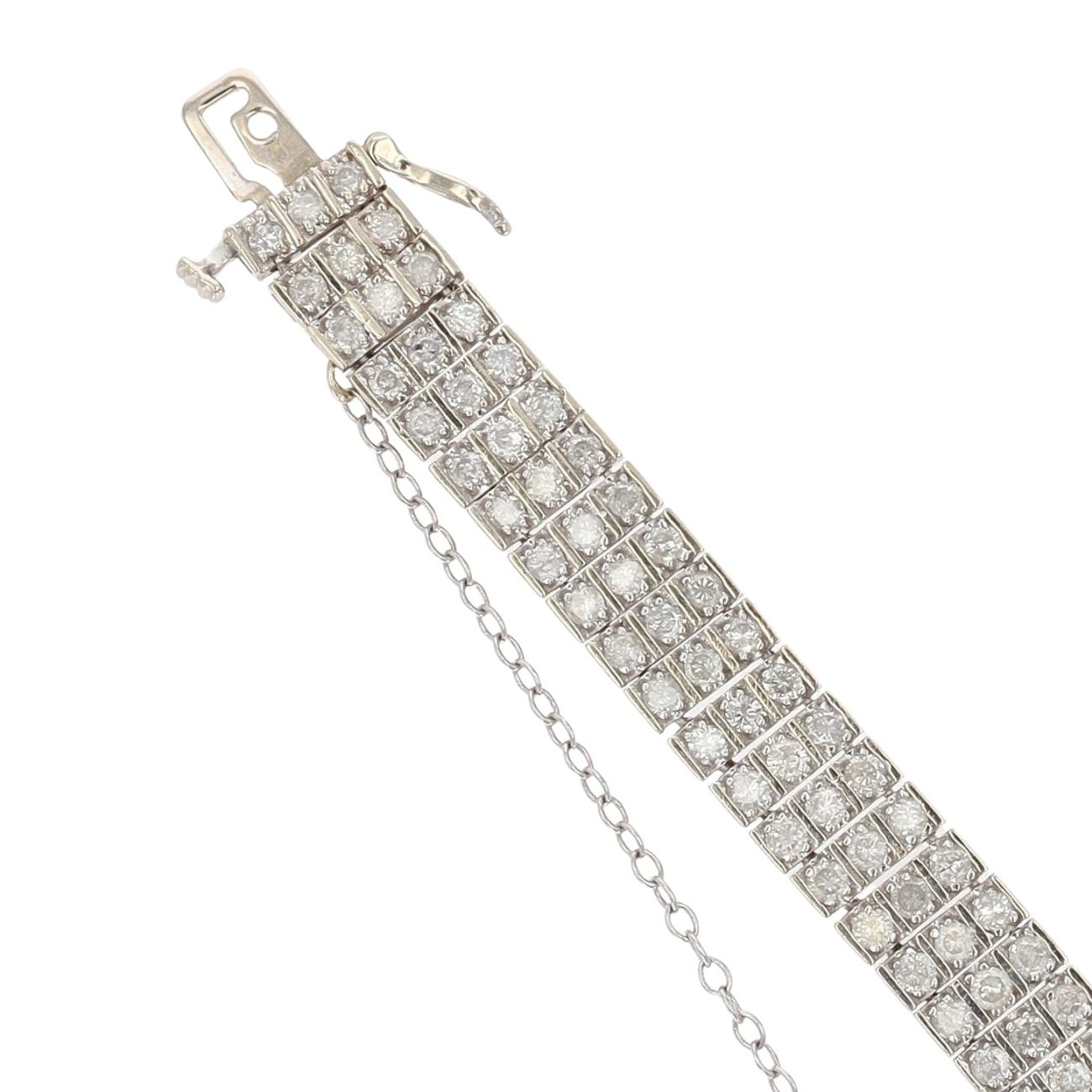 9ct White Gold 6.00ct Brilliant Cut Diamond Three Row Bracelet 6.5"