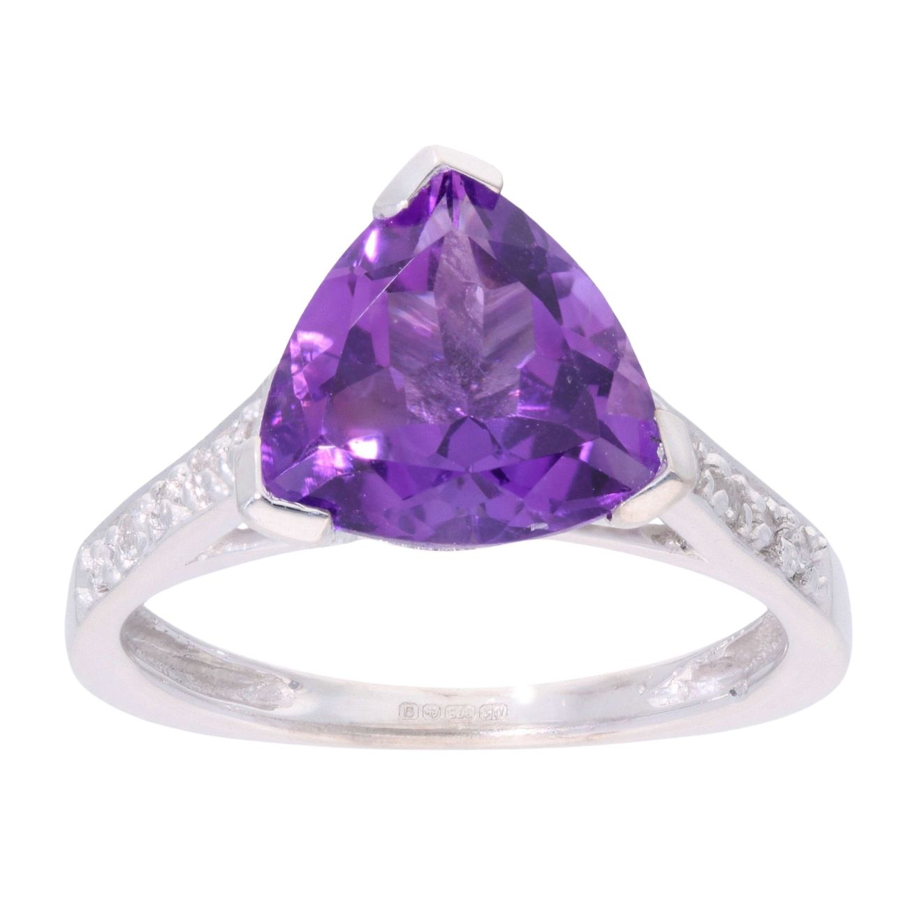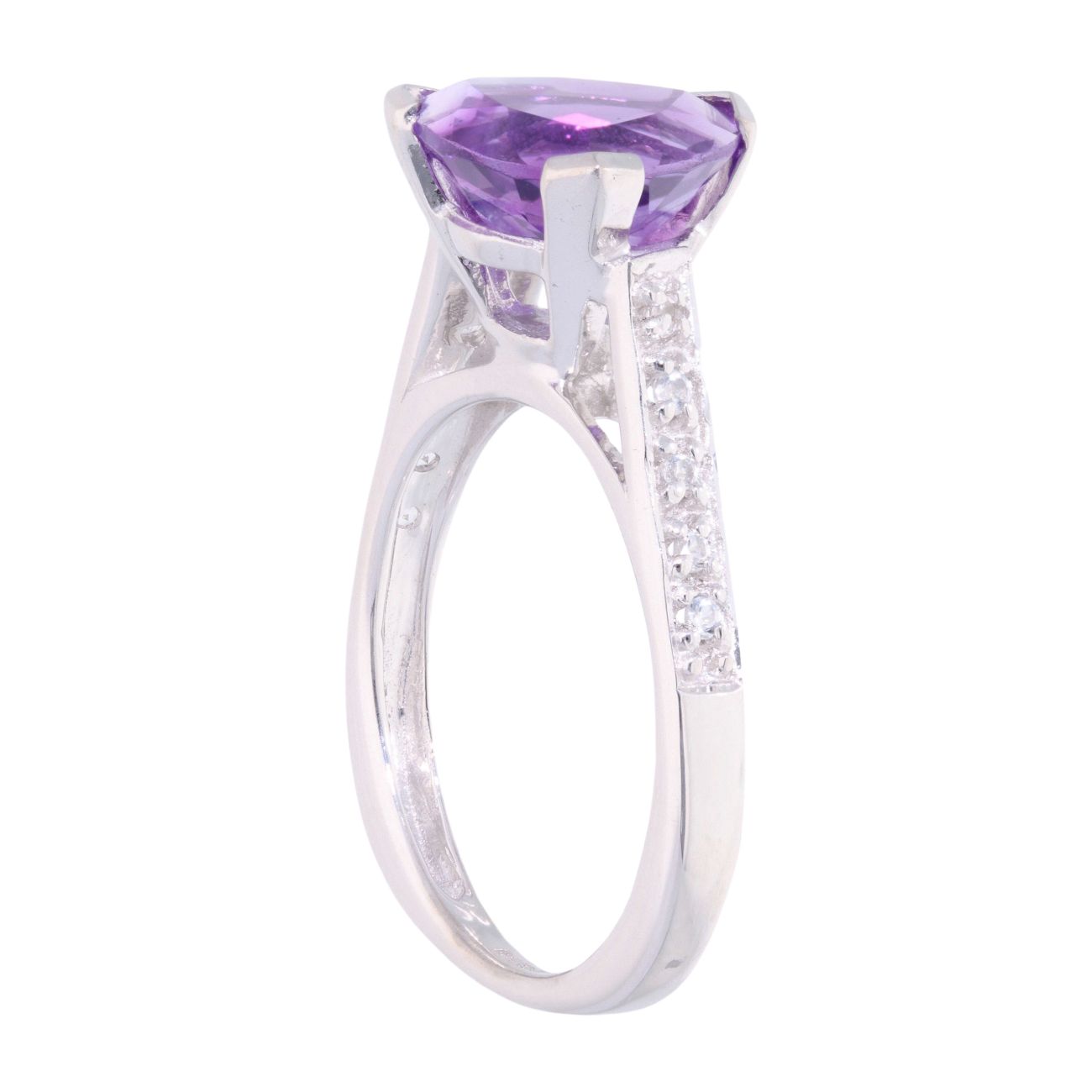 9ct White Gold Amethyst And Cubic Zirconia Stone Set Ring