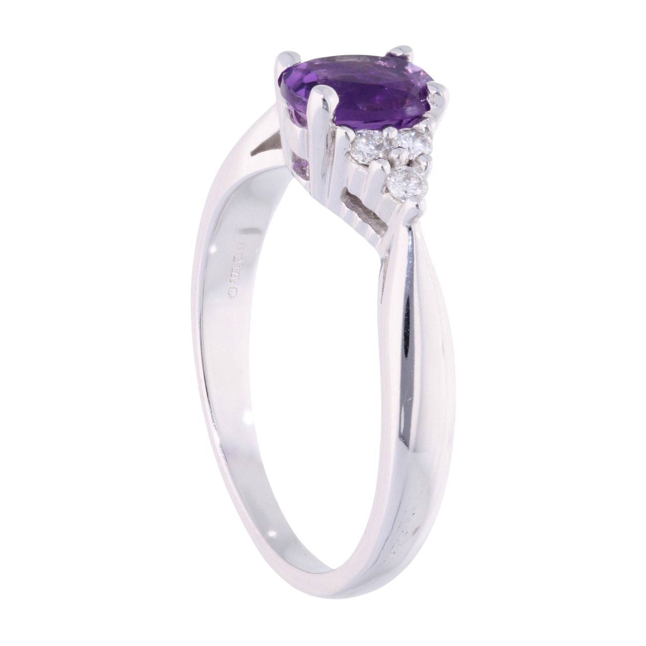 9ct White Gold Amethyst and Diamond Oval Ring