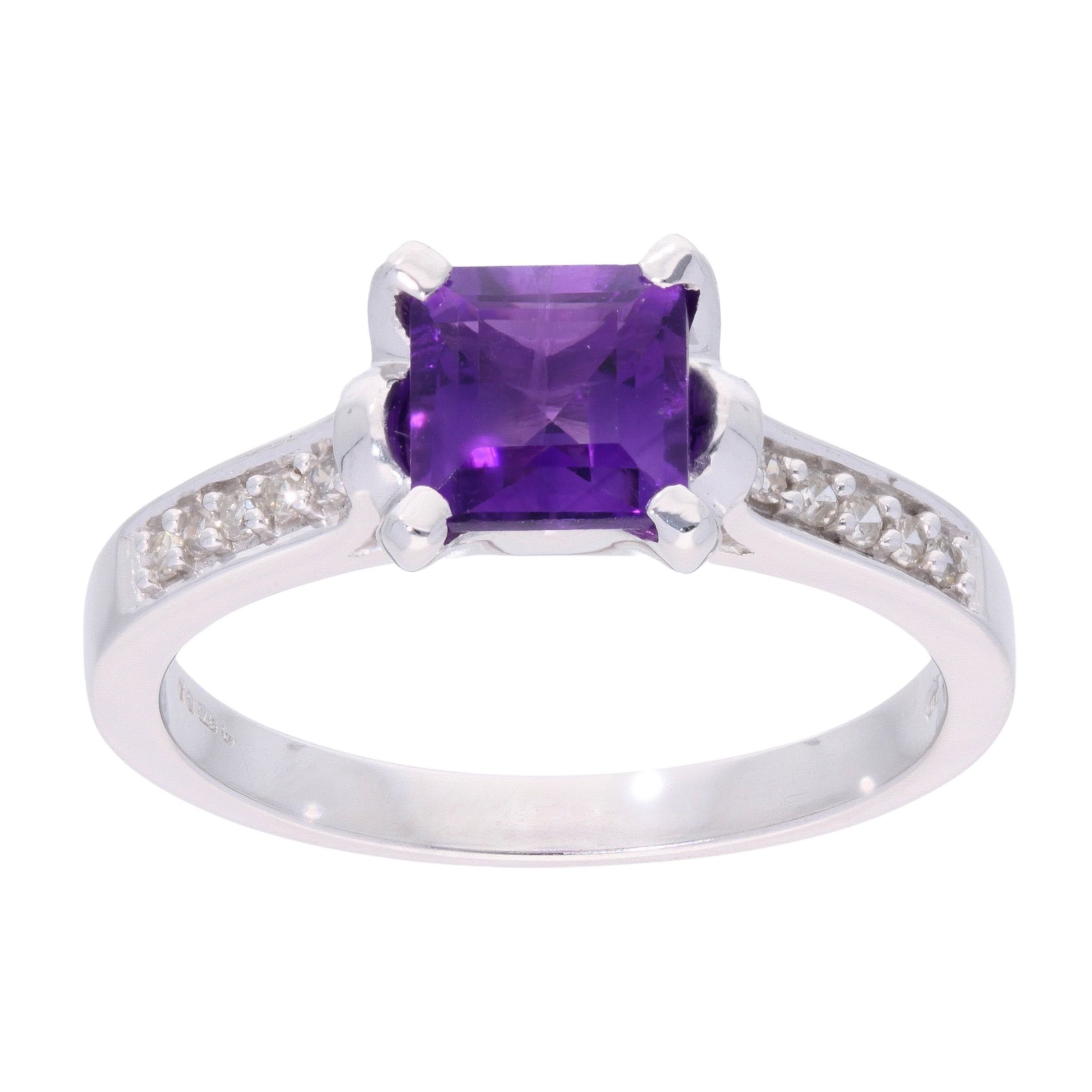 9ct White Gold Amethyst and Diamond Square Ring