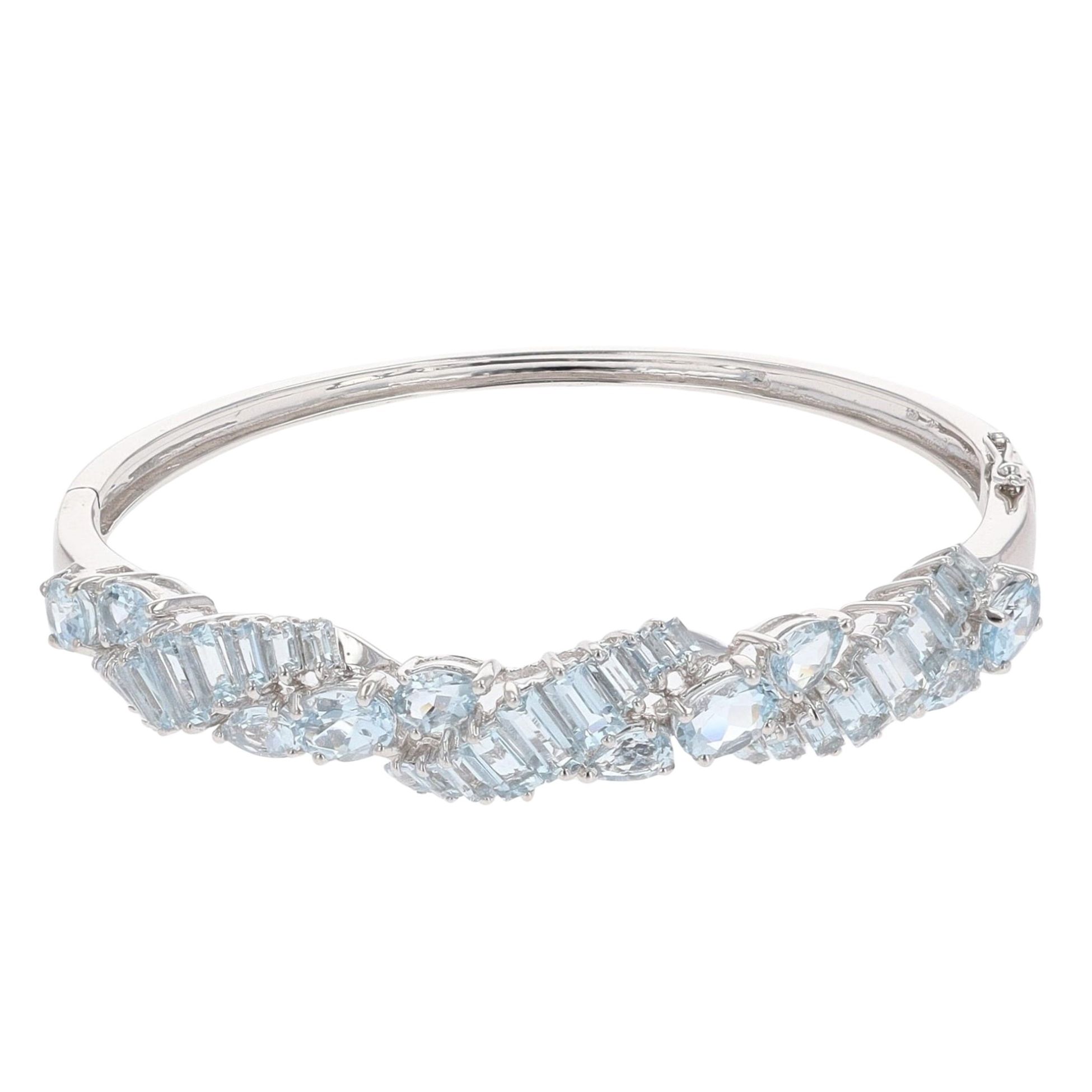 9ct White Gold Aquamarine Hinged Bangle
