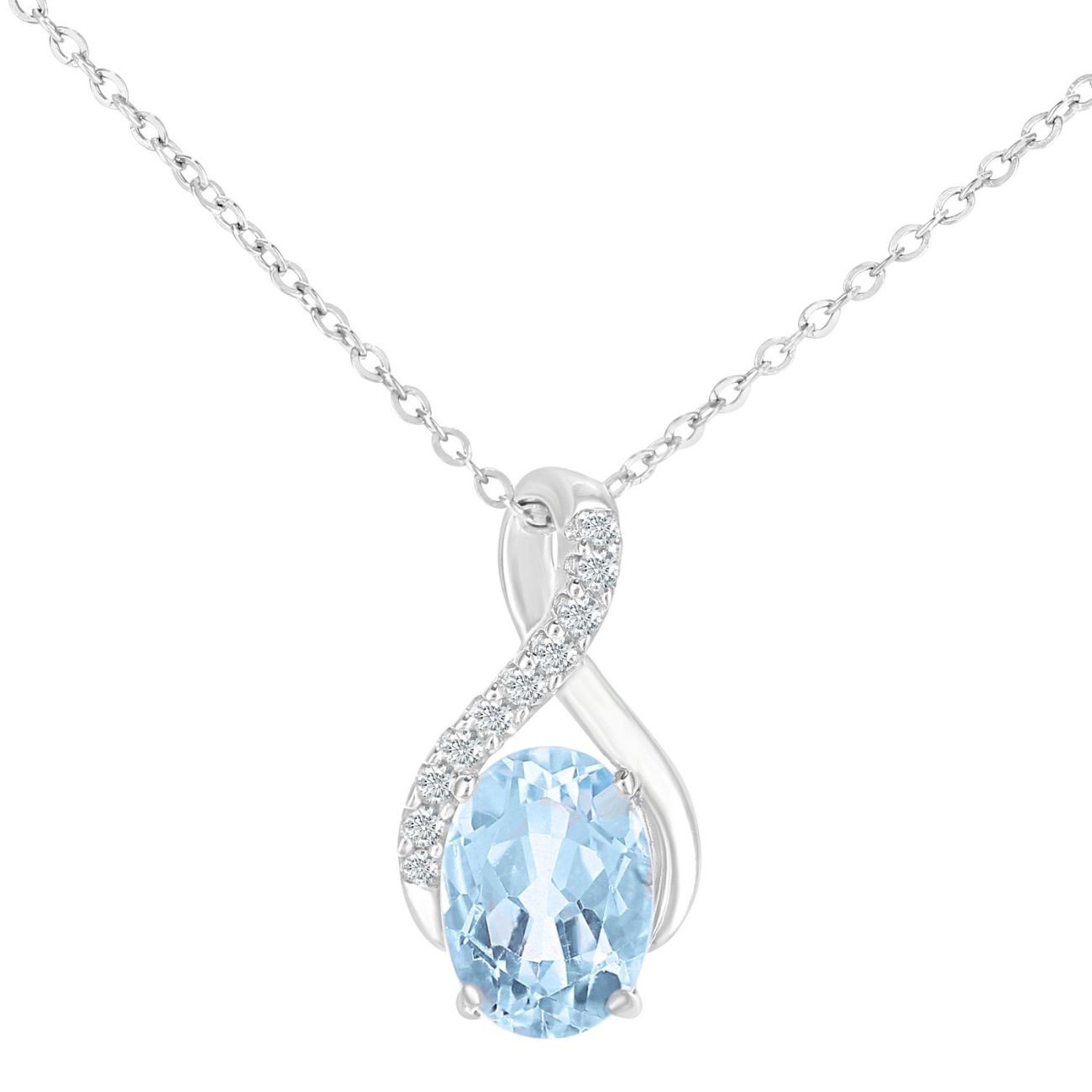 9ct White Gold Blue Topaz and Diamond Crossover Pendant Necklace