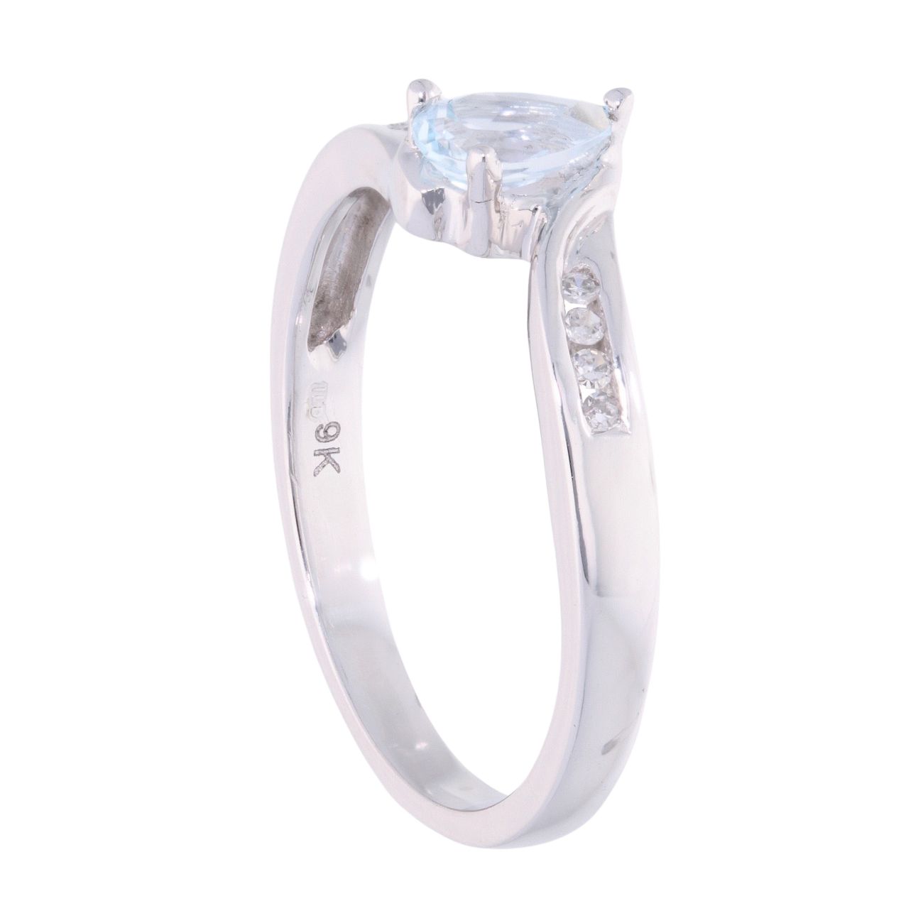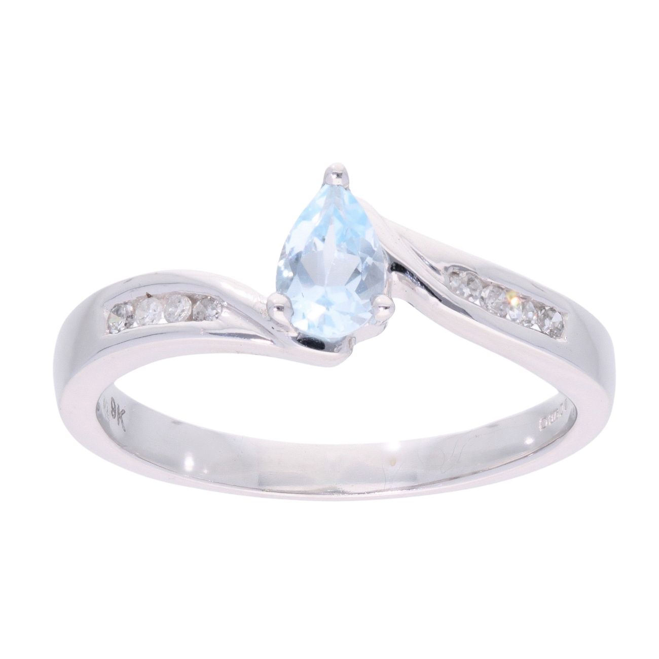 9ct White Gold Blue Topaz and Diamond Pear Twist Ring