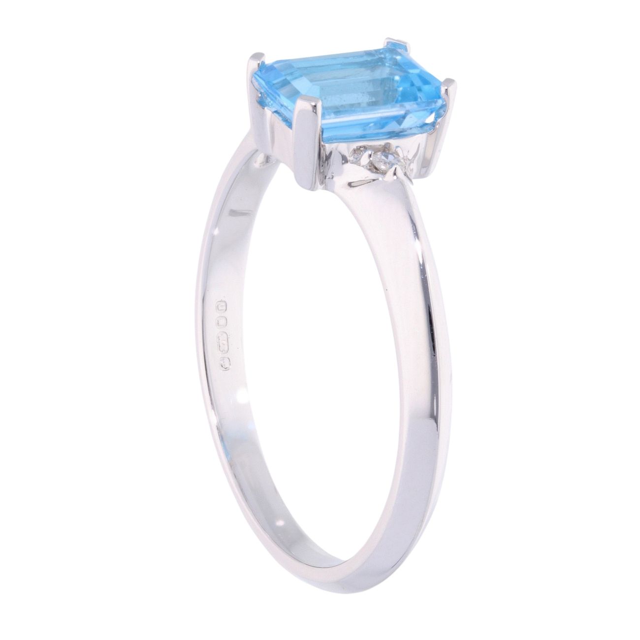 9ct White Gold Blue Topaz and Diamond Rectangular Ring