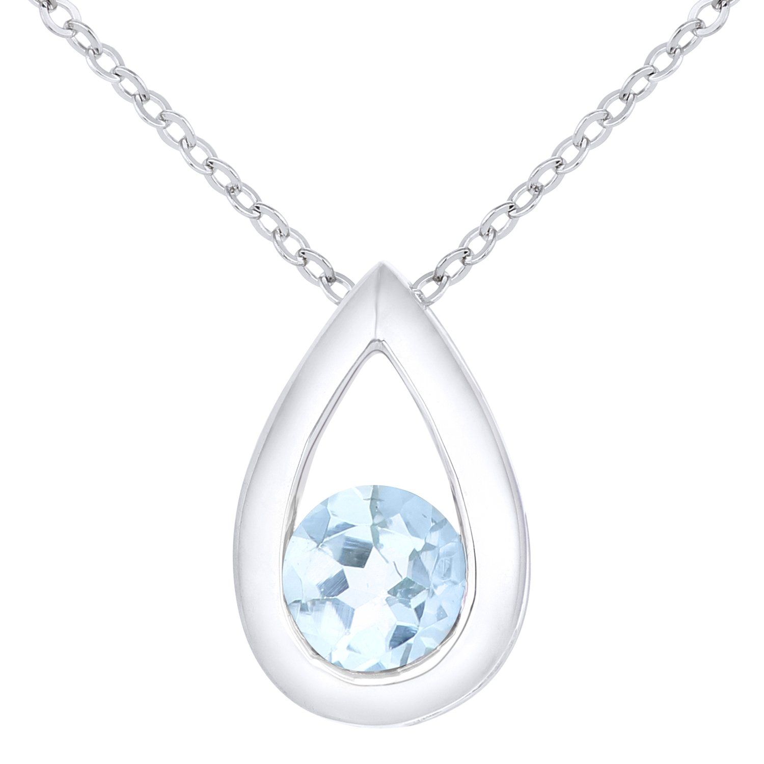 9ct White Gold Blue Topaz Teardrop Pendant Necklace