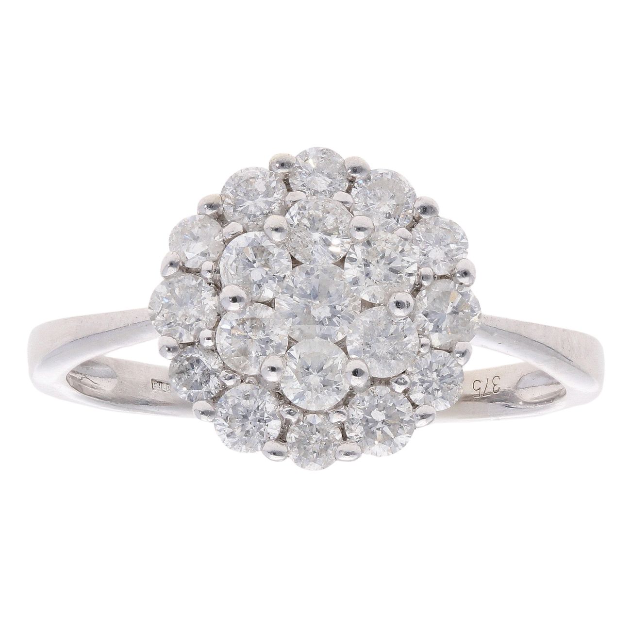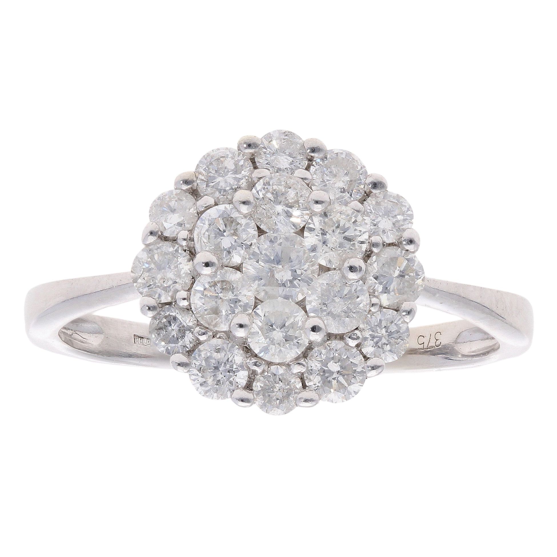 9ct White Gold Brilliant Cut 1.00ct Diamond Cluster Ring