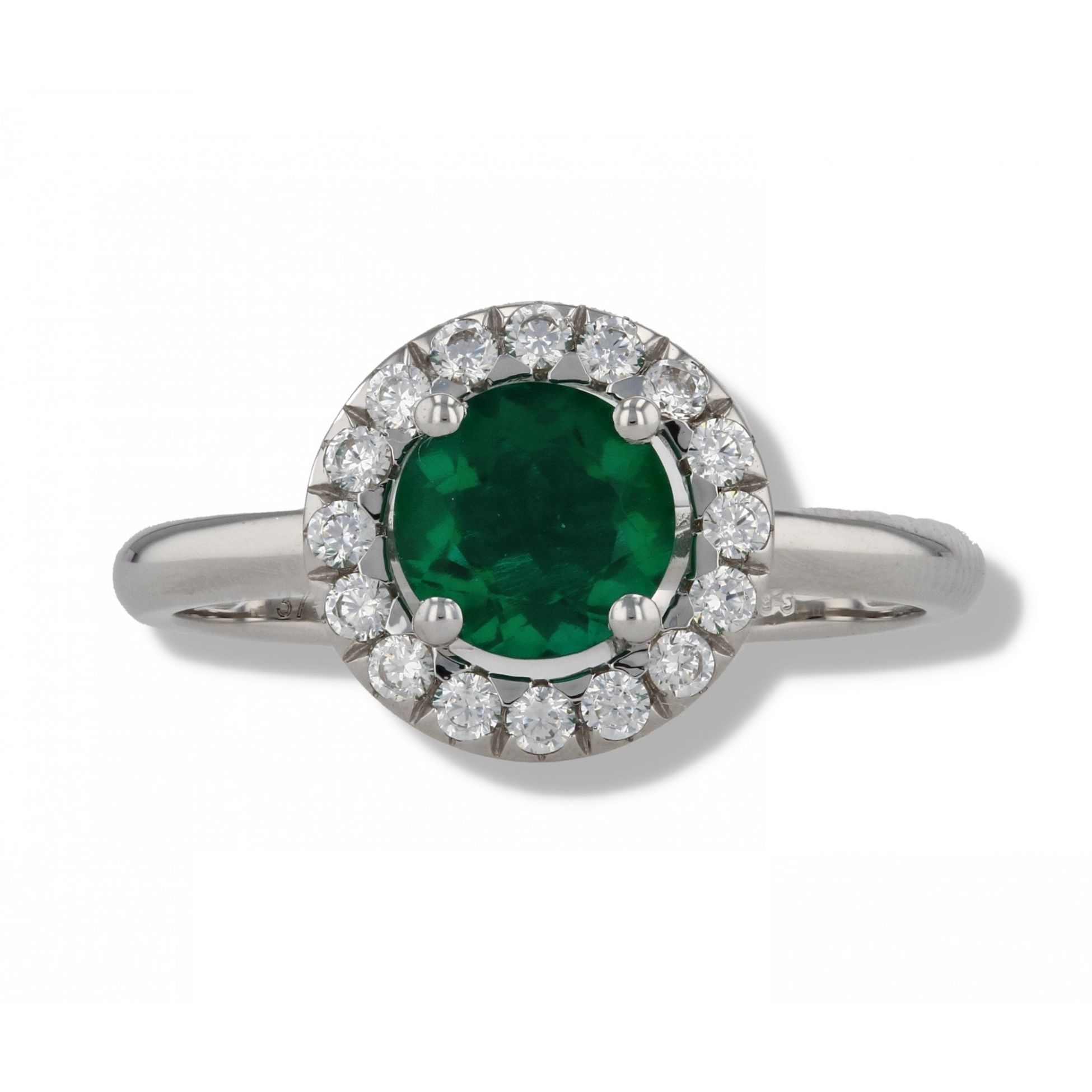 9ct White Gold Created Emerald And Cubic Zirconia Ring