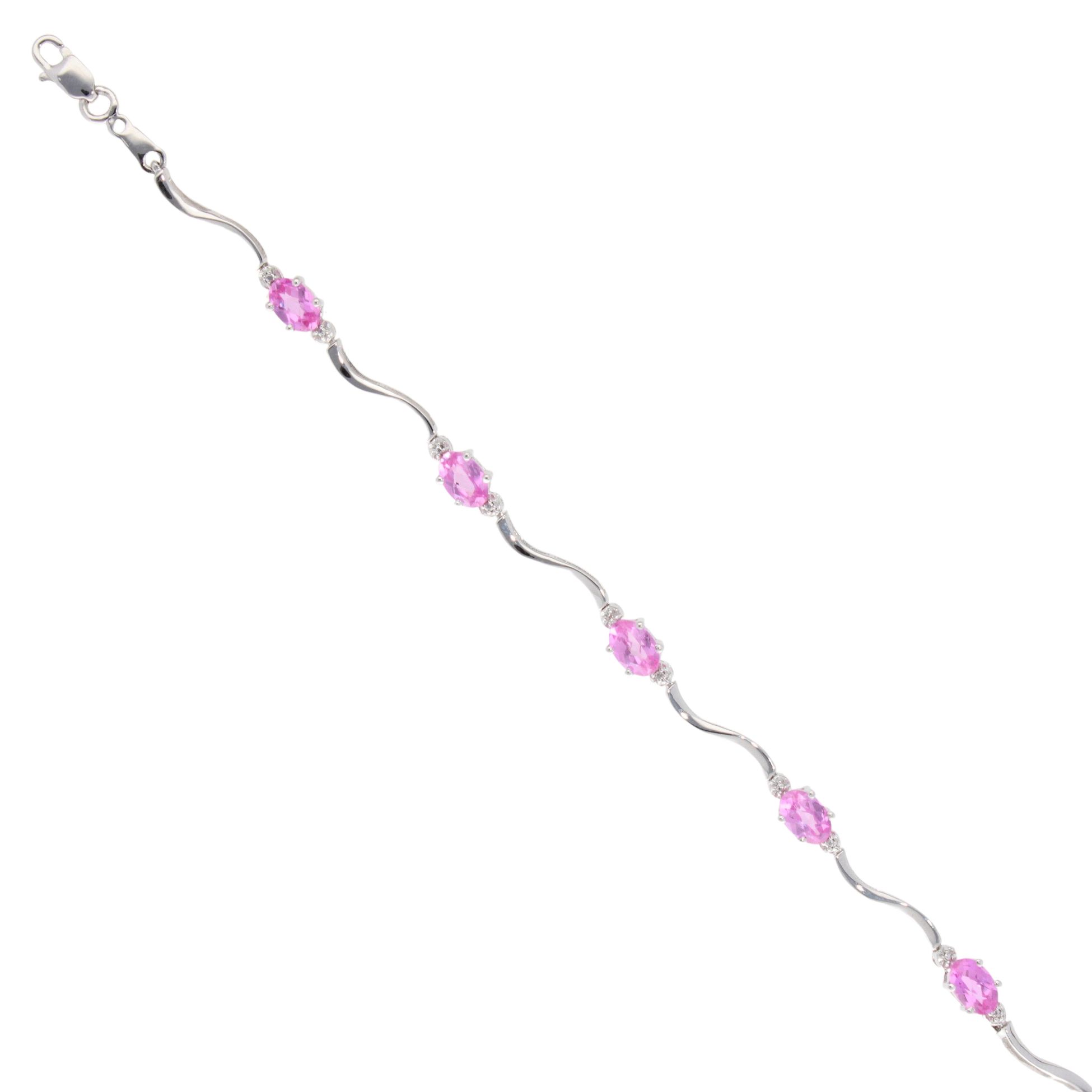 9ct White Gold Created Pink Sapphire and Diamond Bracelet 7"