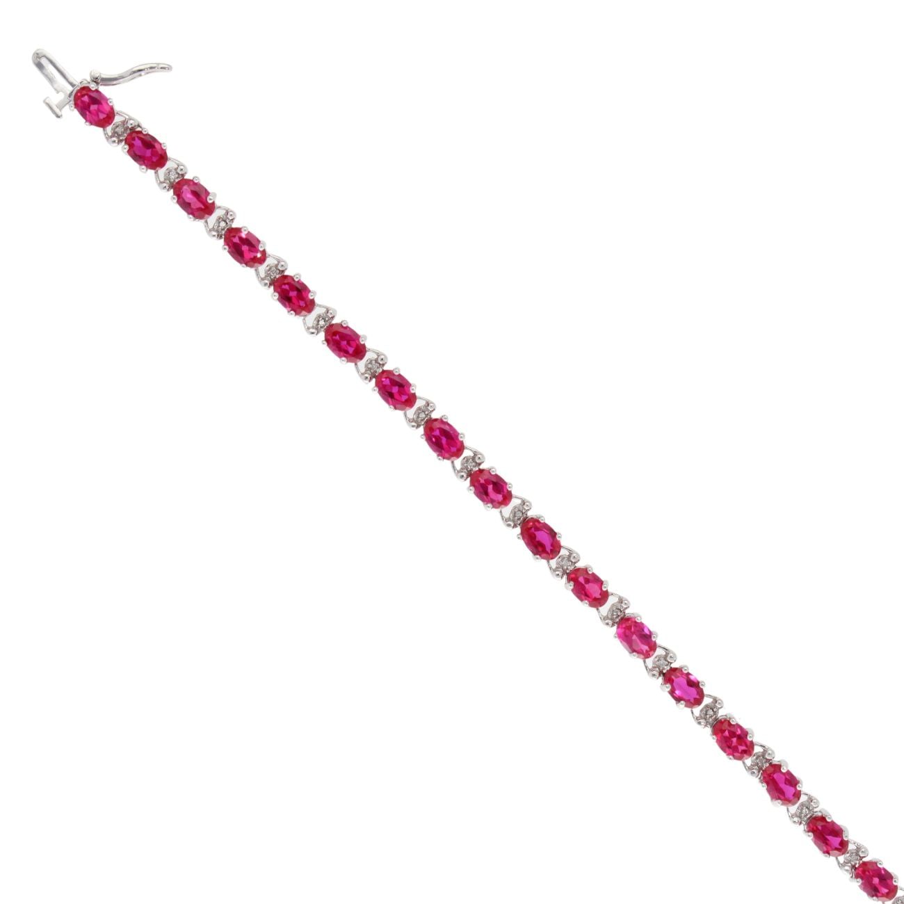 9ct White Gold Created Ruby and Diamond Bracelet 7"
