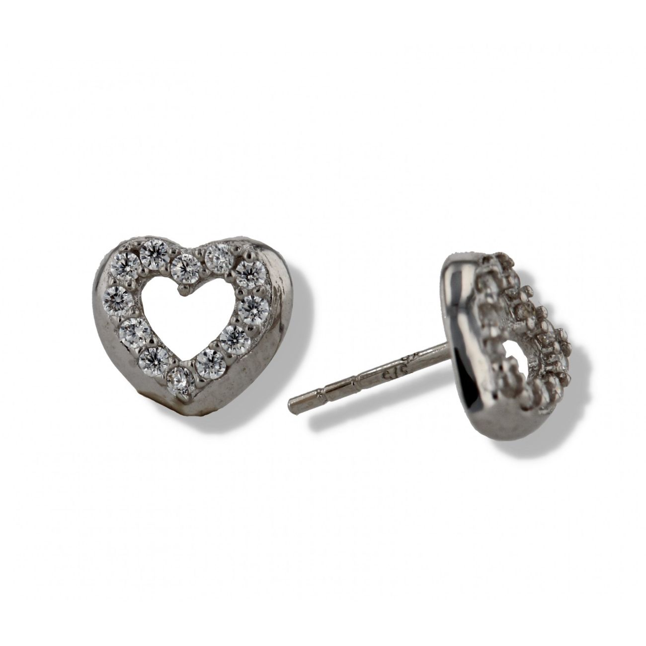 9ct White Gold Crystal Heart Stud Earrings