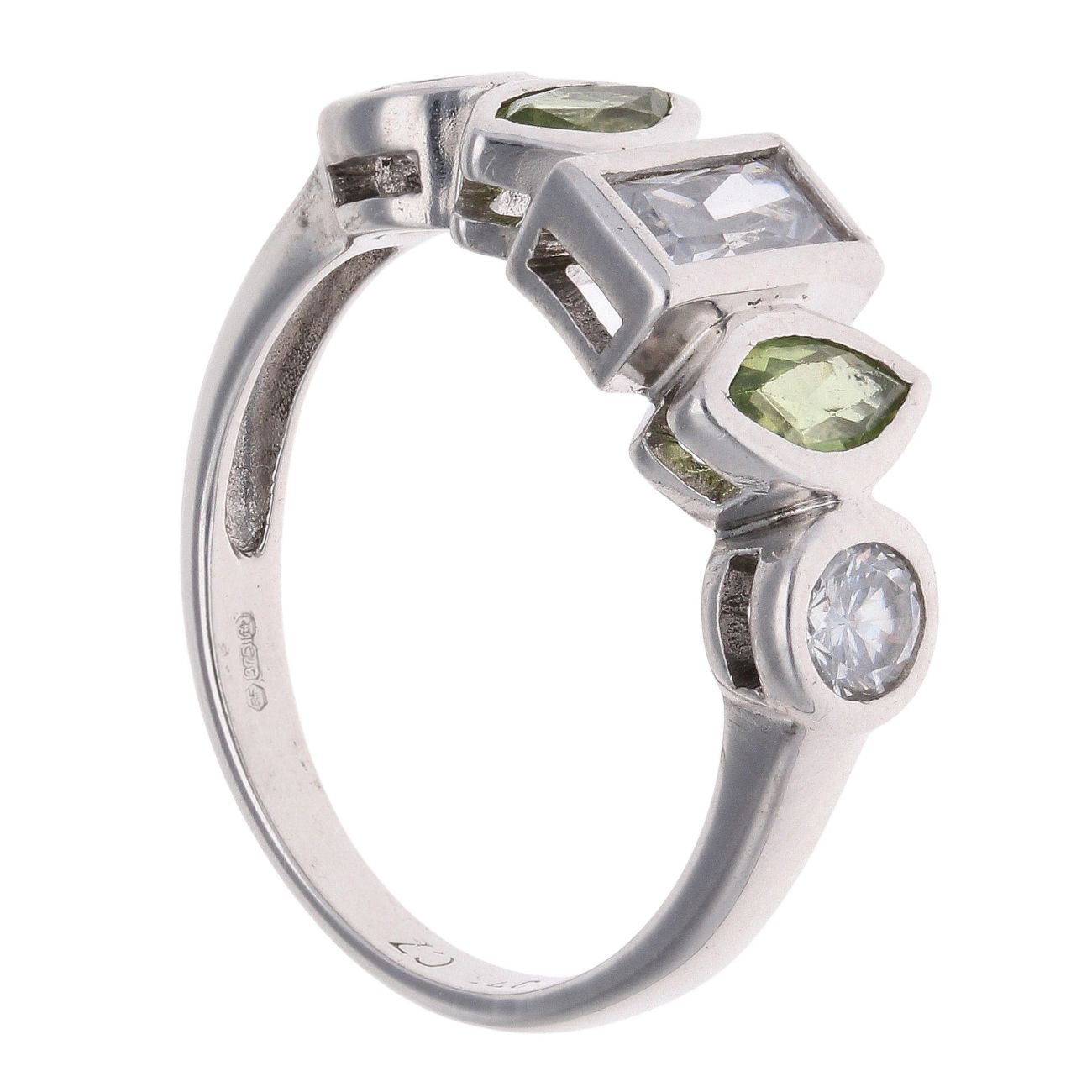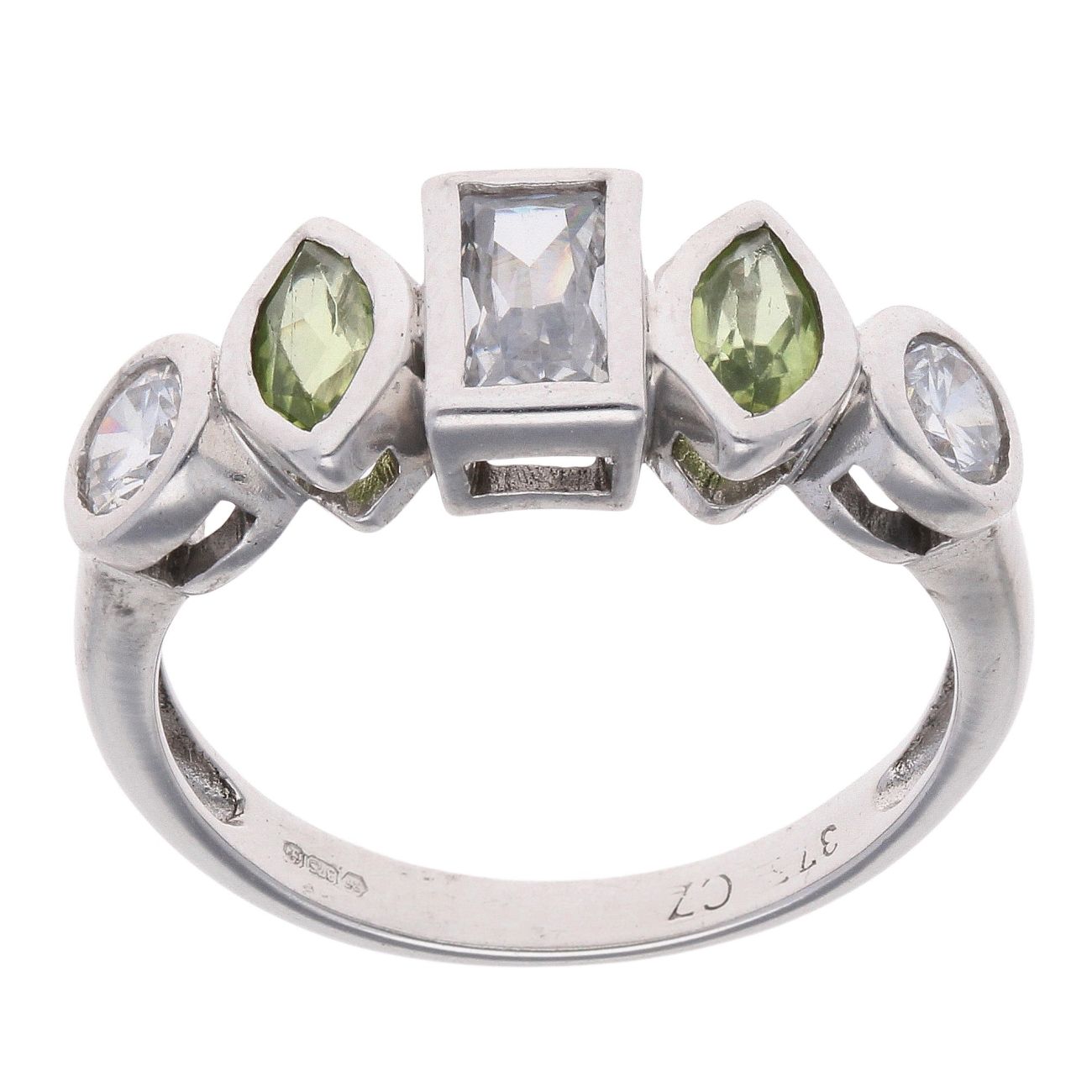 9ct White Gold Cubic Zirconia and Peridot Fancy Ring