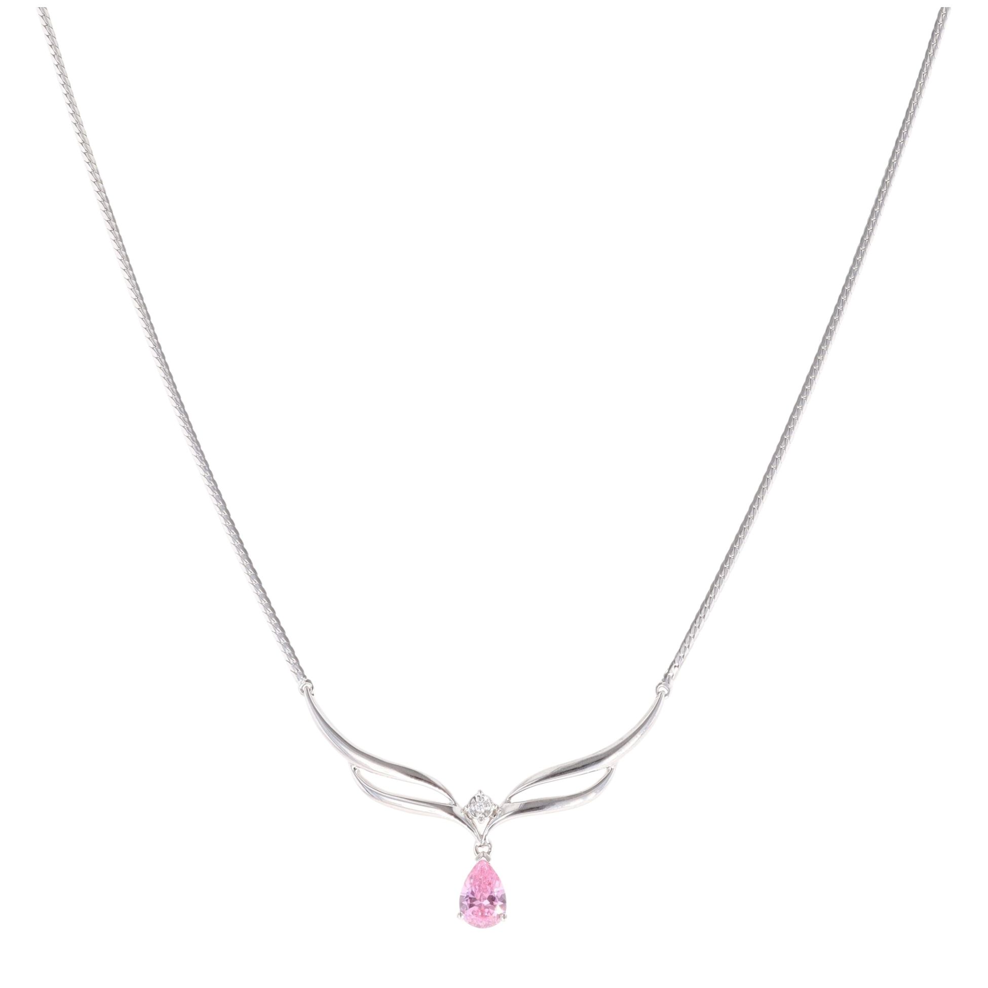 9ct White Gold Cubic Zirconia And Pink Topaz Necklace 18"