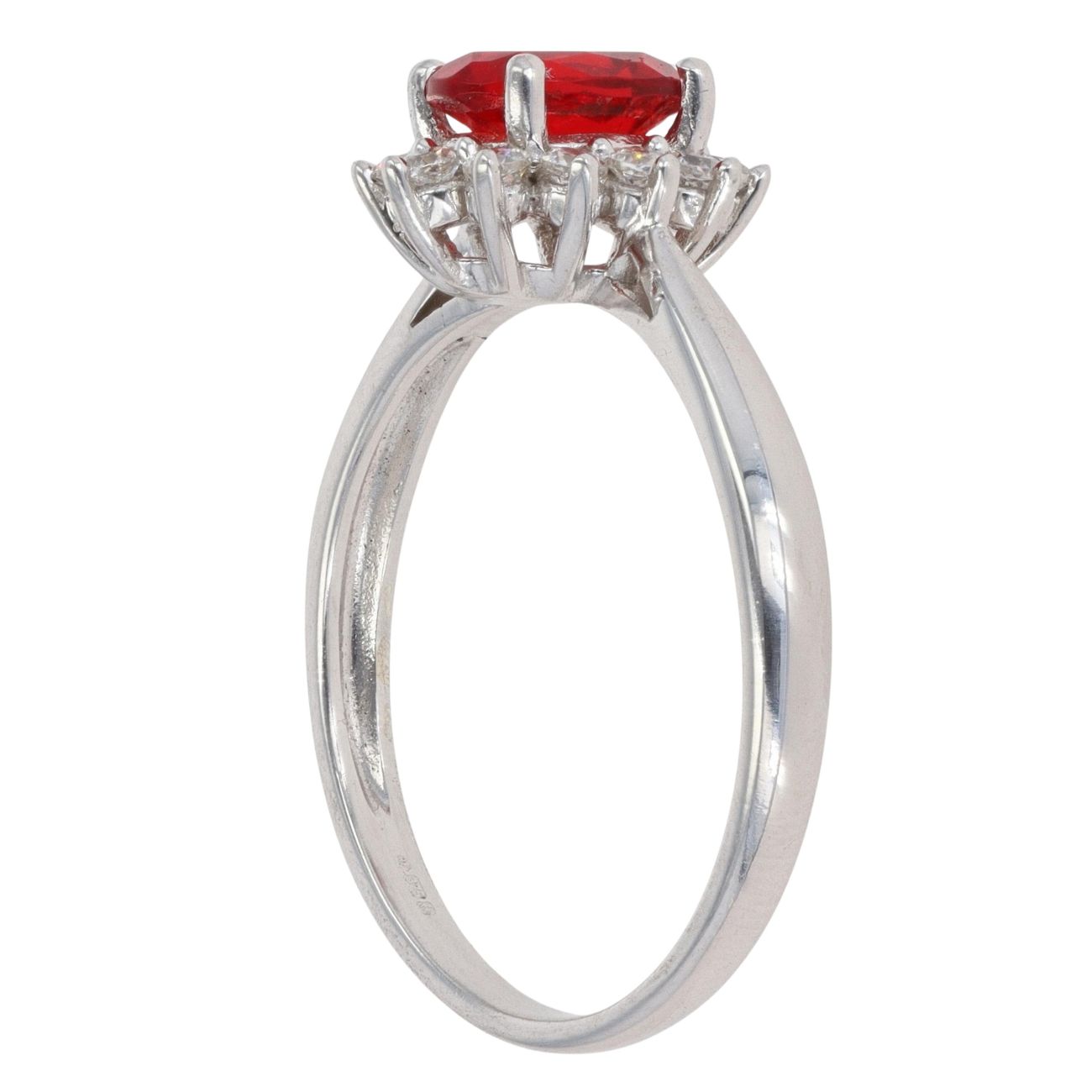 9ct White Gold Cubic Zirconia and Red Gemstone Cluster Ring