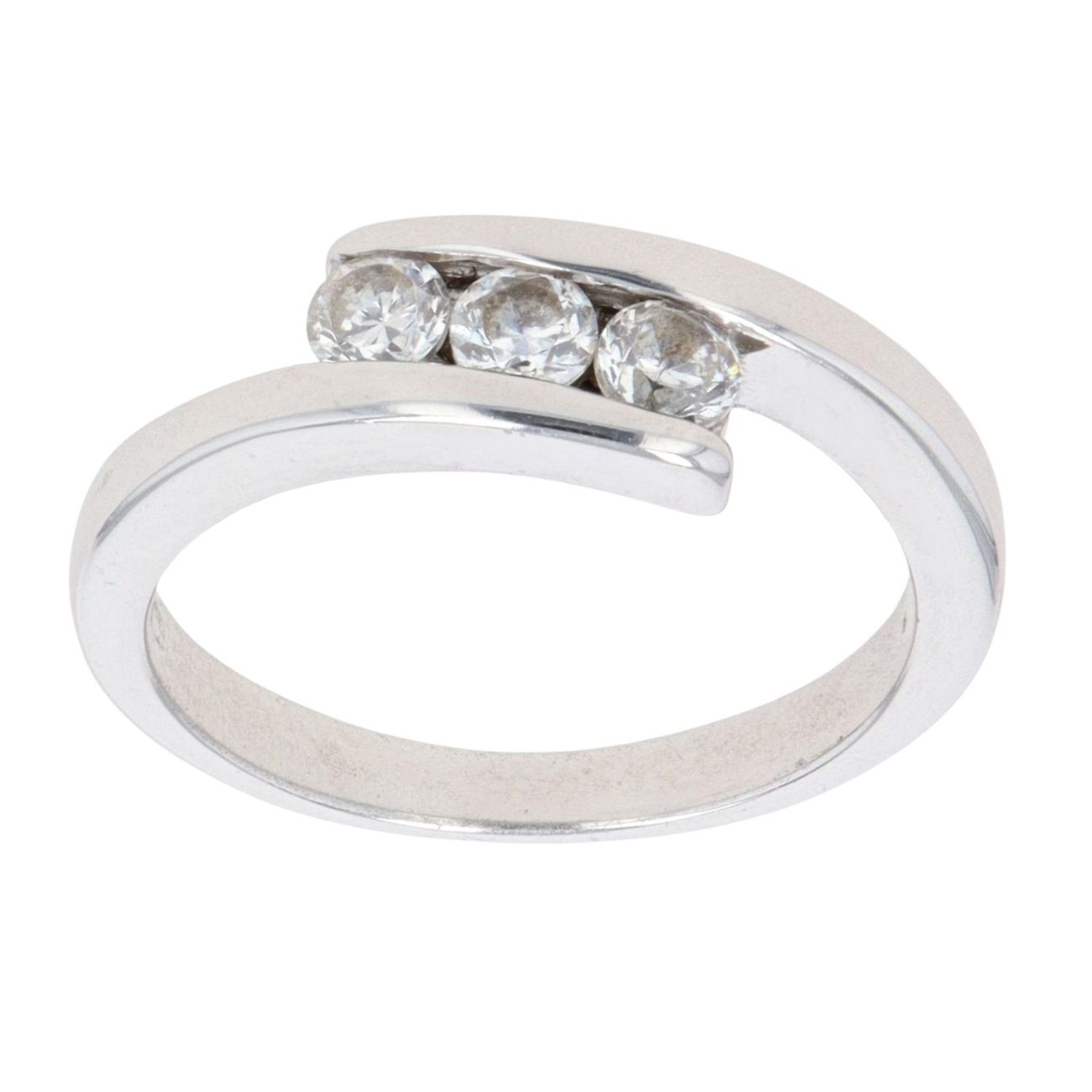 9ct White Gold Cubic Zirconia Crossover Ring
