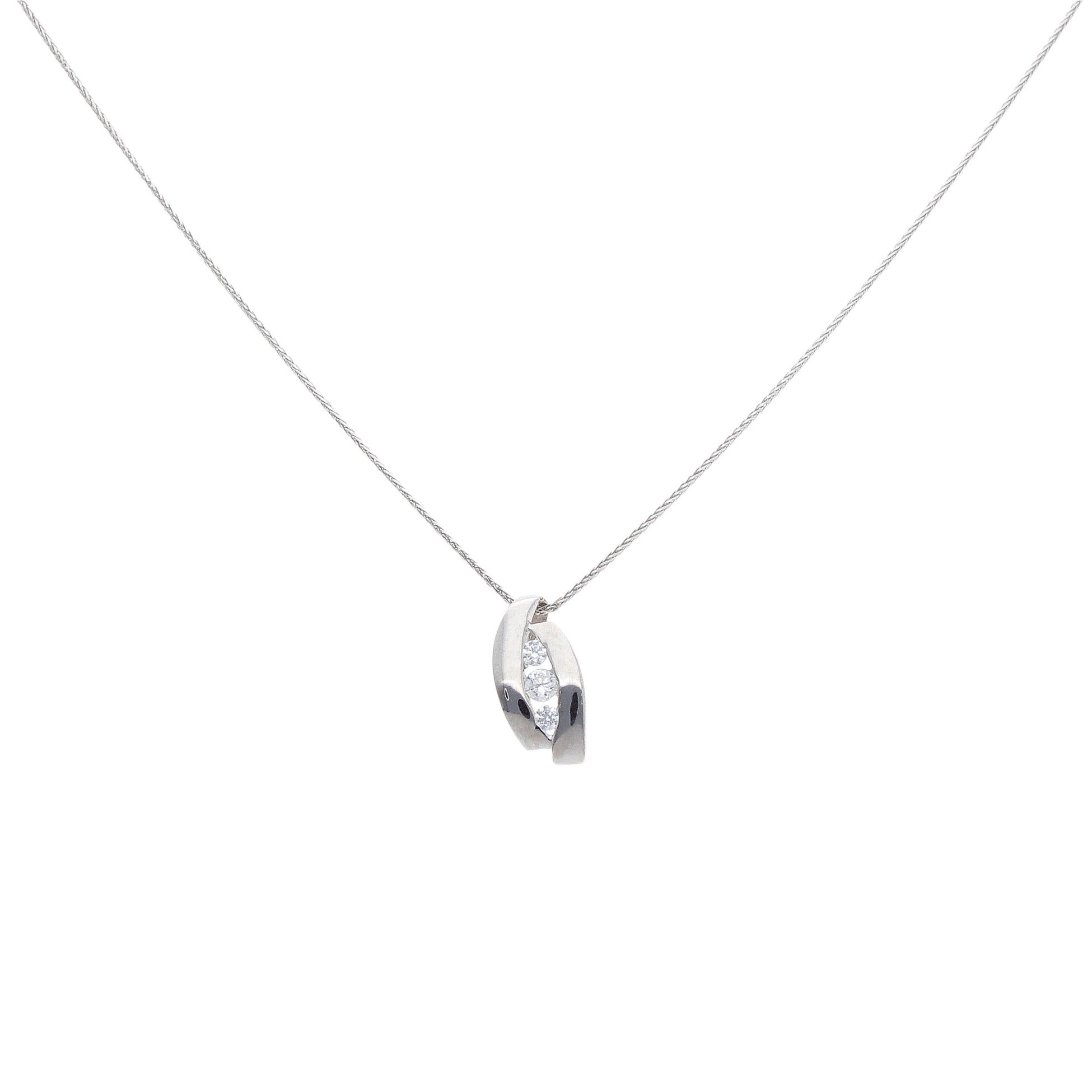 9ct White Gold Cubic Zirconia Fancy Wave Pendant and Chain 18"