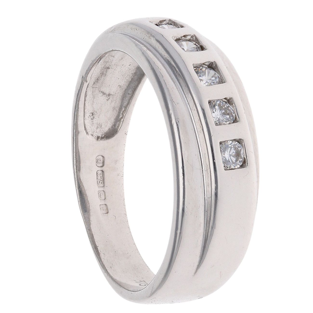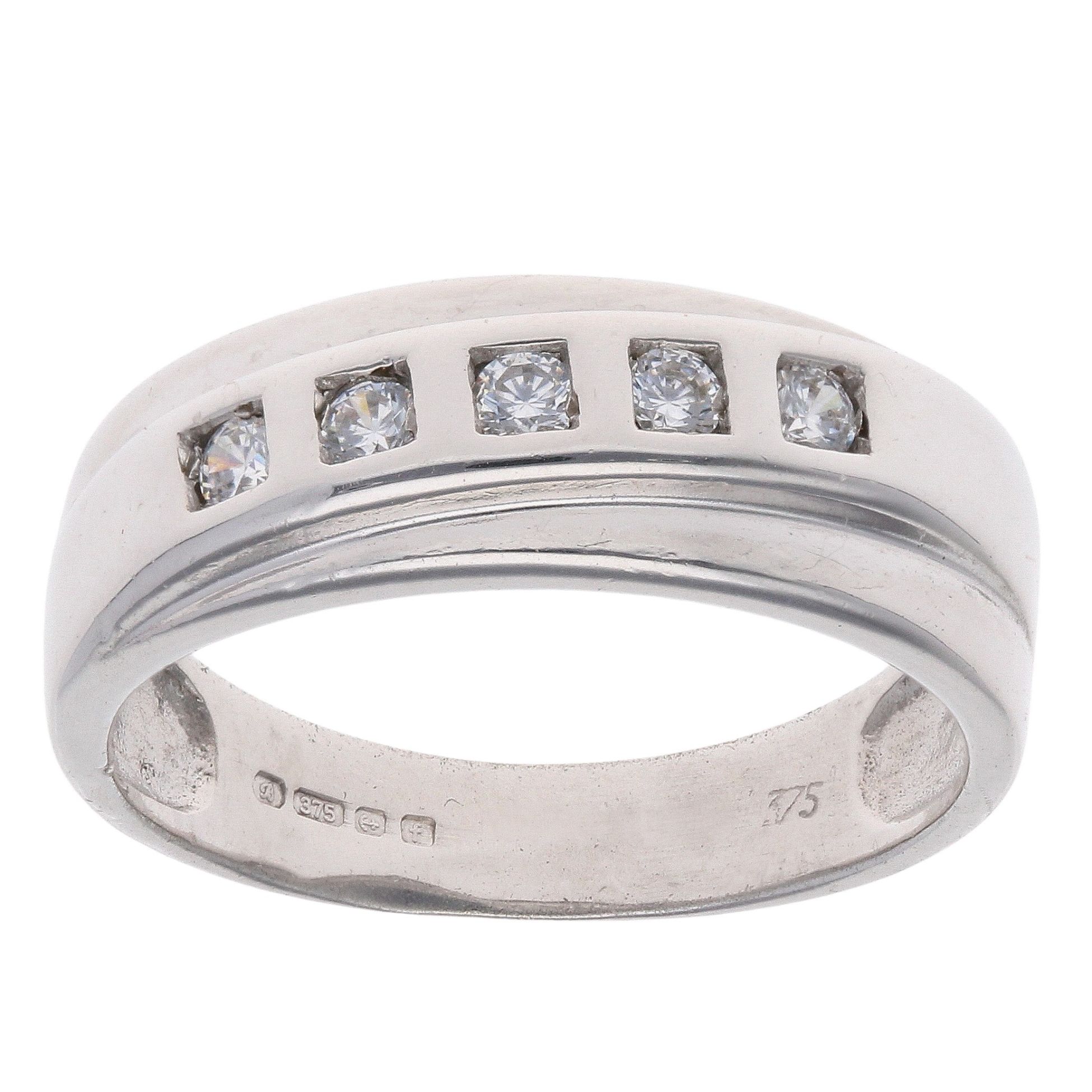 9ct White Gold Cubic Zirconia Five Stone Crossover Ring
