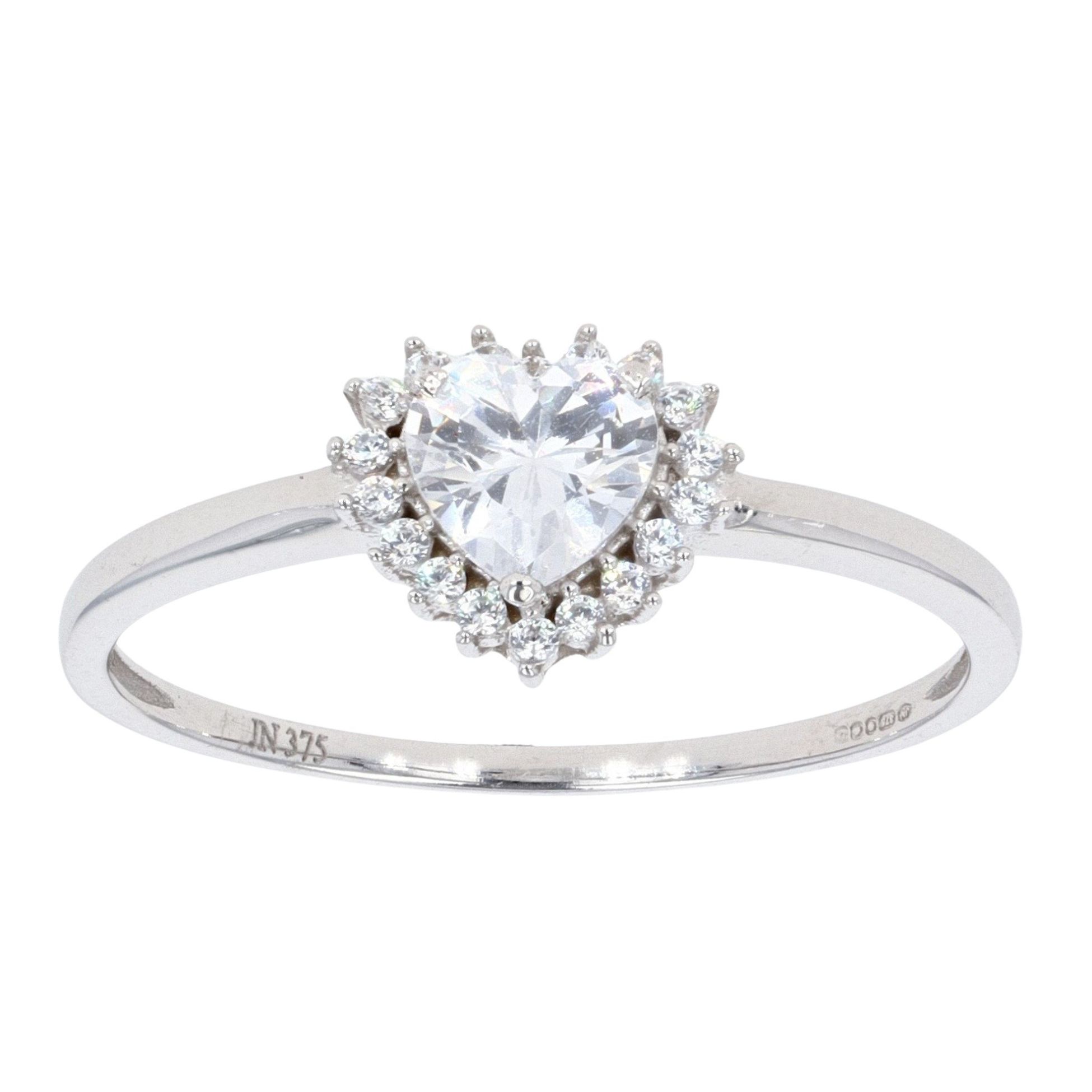 9ct White Gold Cubic Zirconia Heart Cluster Ring