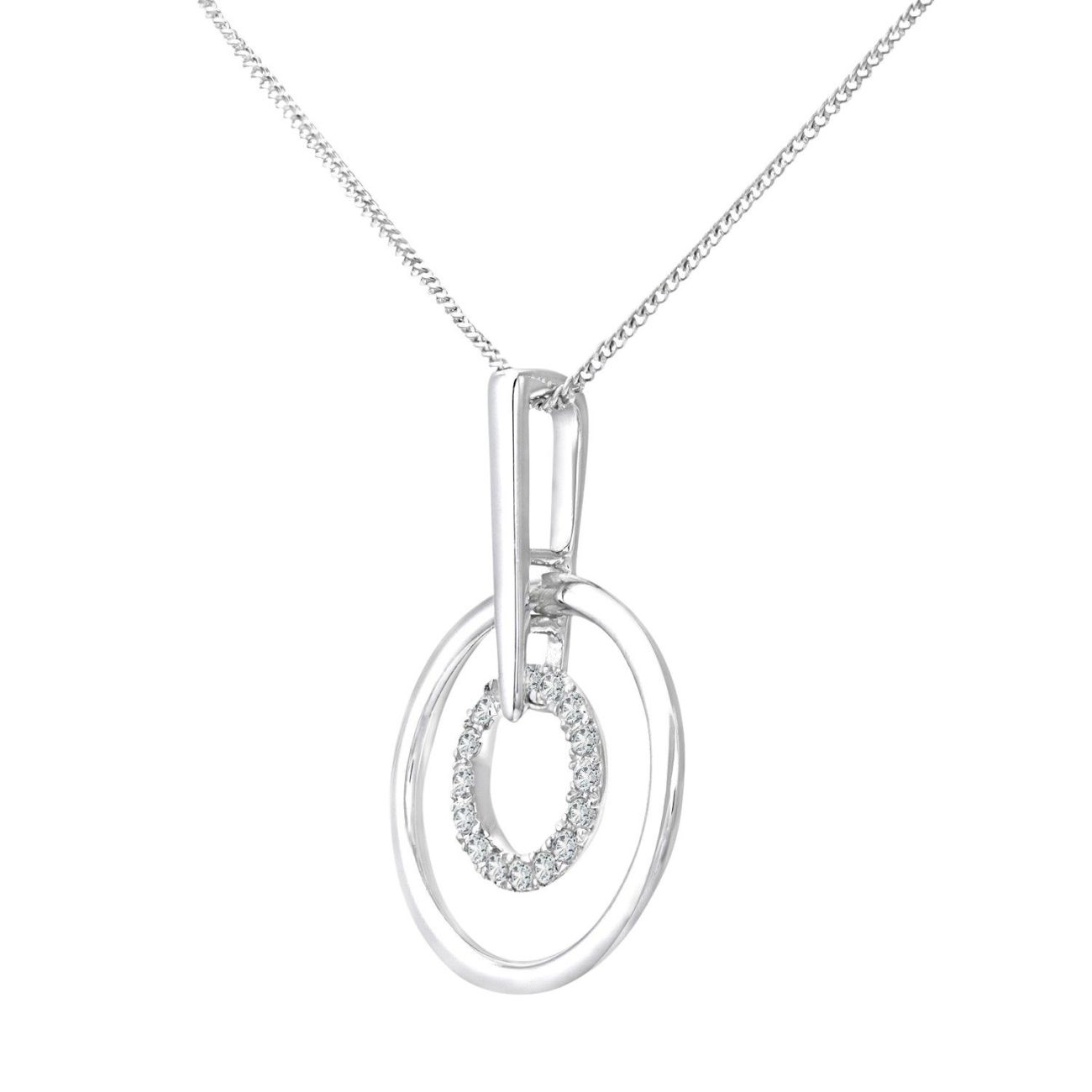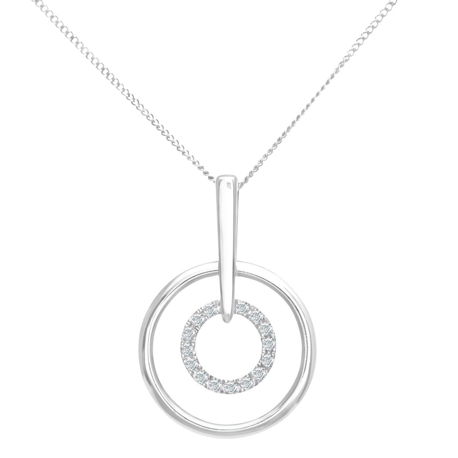 9ct White Gold Diamond Circle Pendant Necklace