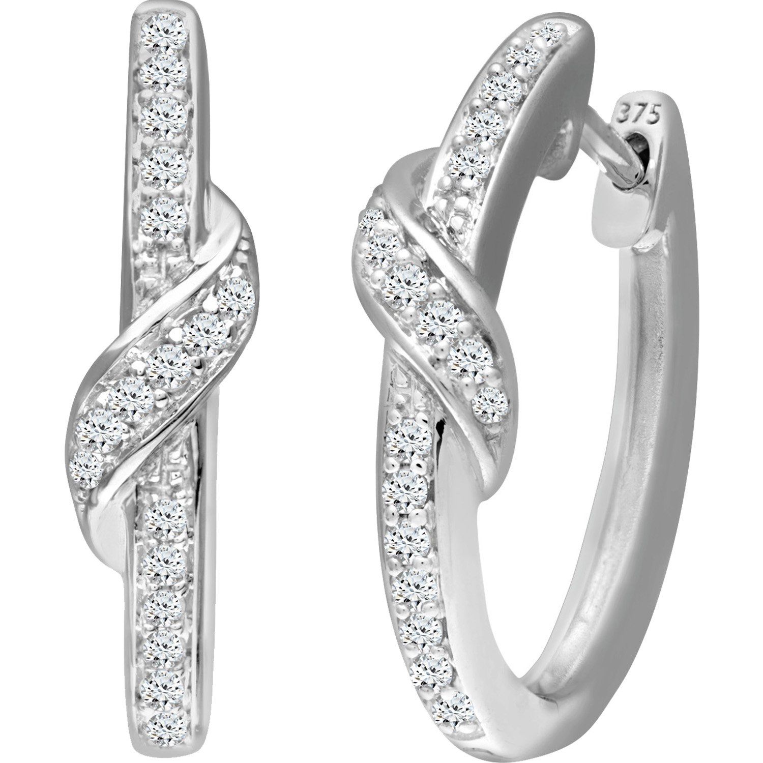 9ct White Gold Diamond Crossover Hoops9ct White Gold Diamond Crossover Hoops