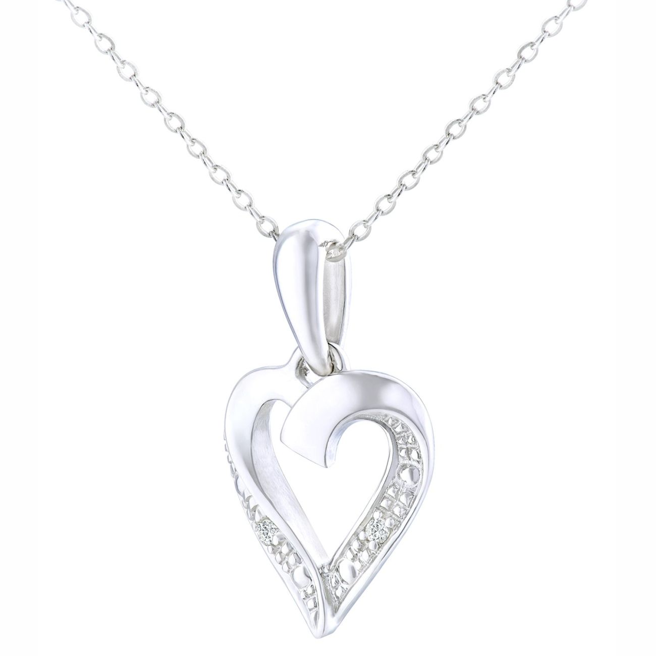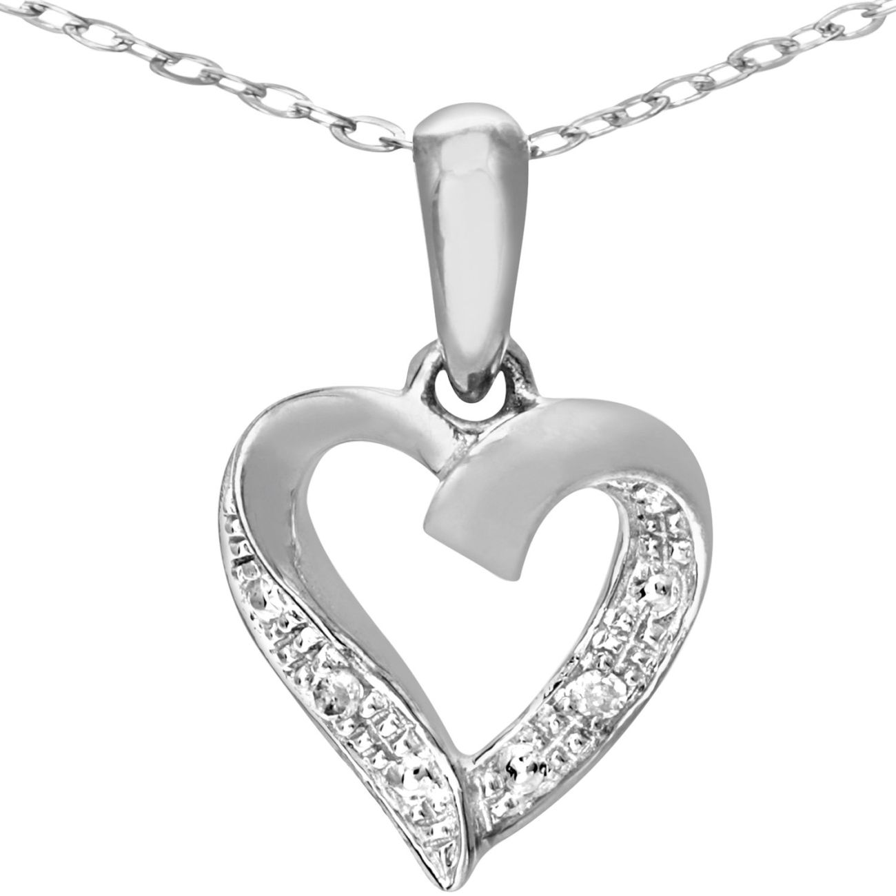 9ct White Gold Diamond Heart Pendant Necklace