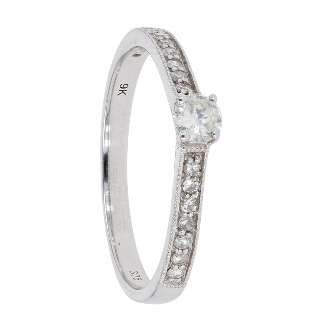 9ct White Gold Diamond Solitaire Ring by Anya Belle