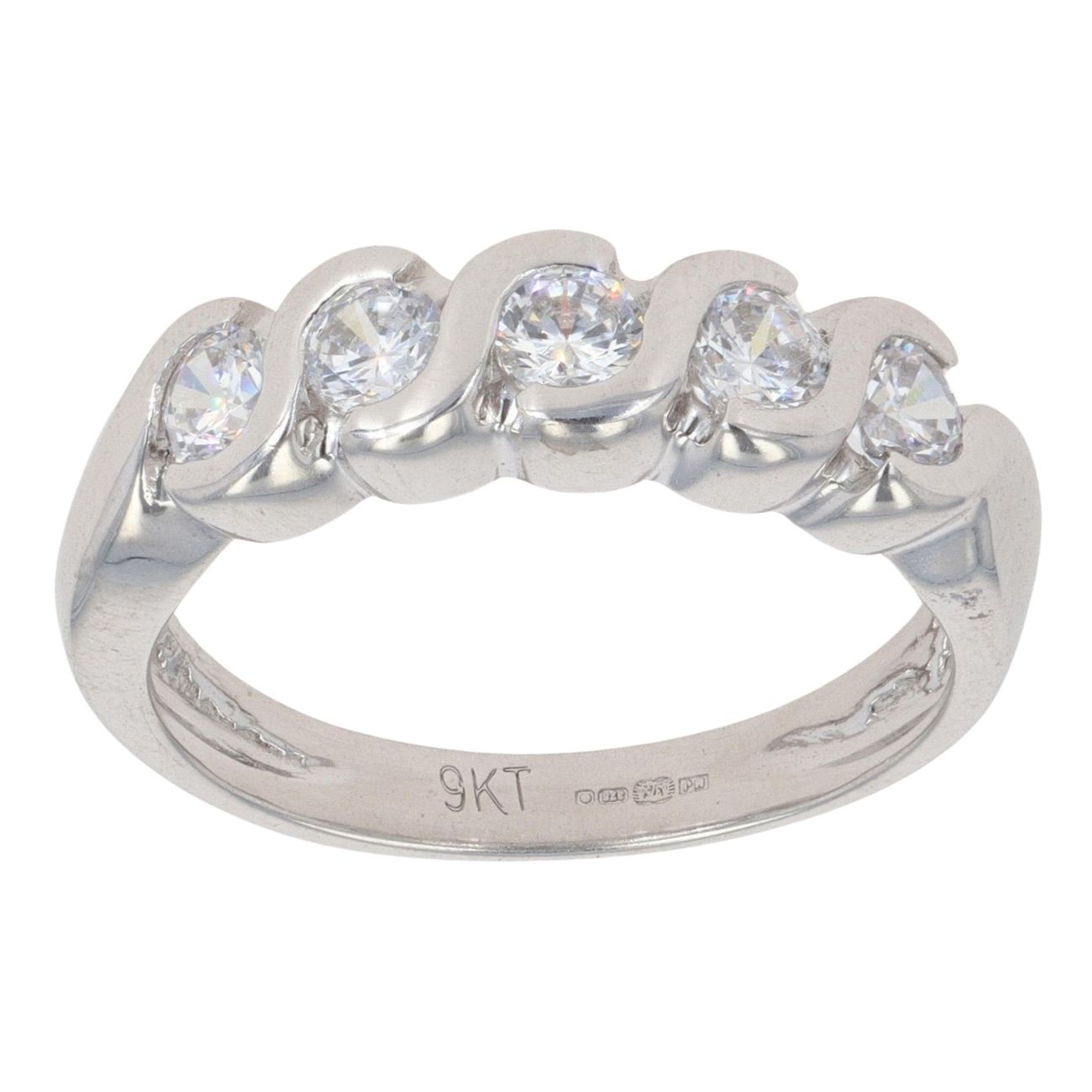 9ct White Gold Five Stone Cubic Zirconia Ring