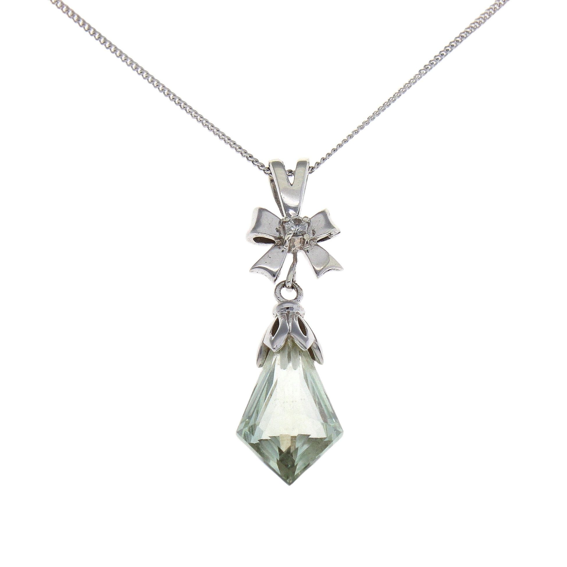 9ct White Gold Green Amethyst and White Sapphire Pendant and Chain 16"