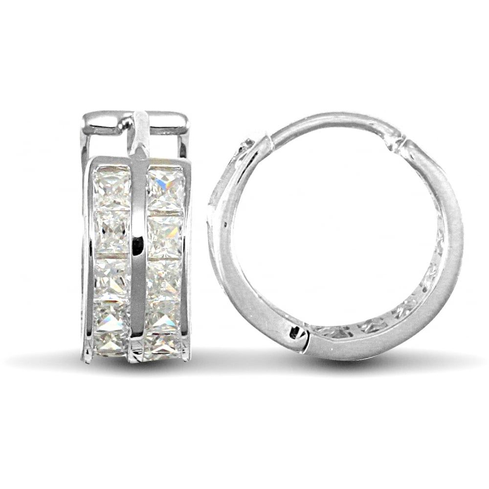 9ct White Gold Huggie Earrings with Cubic Zirconia Stones