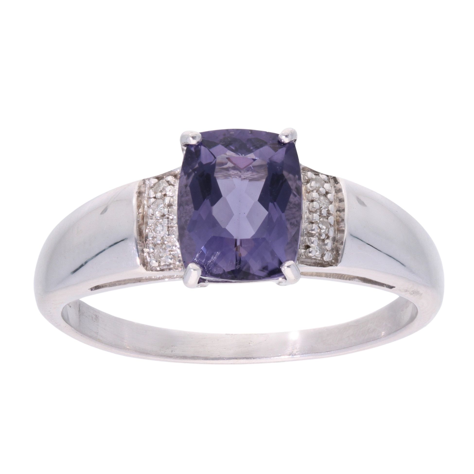 9ct White Gold Iolite And 0.05ct Diamond Fancy Ring