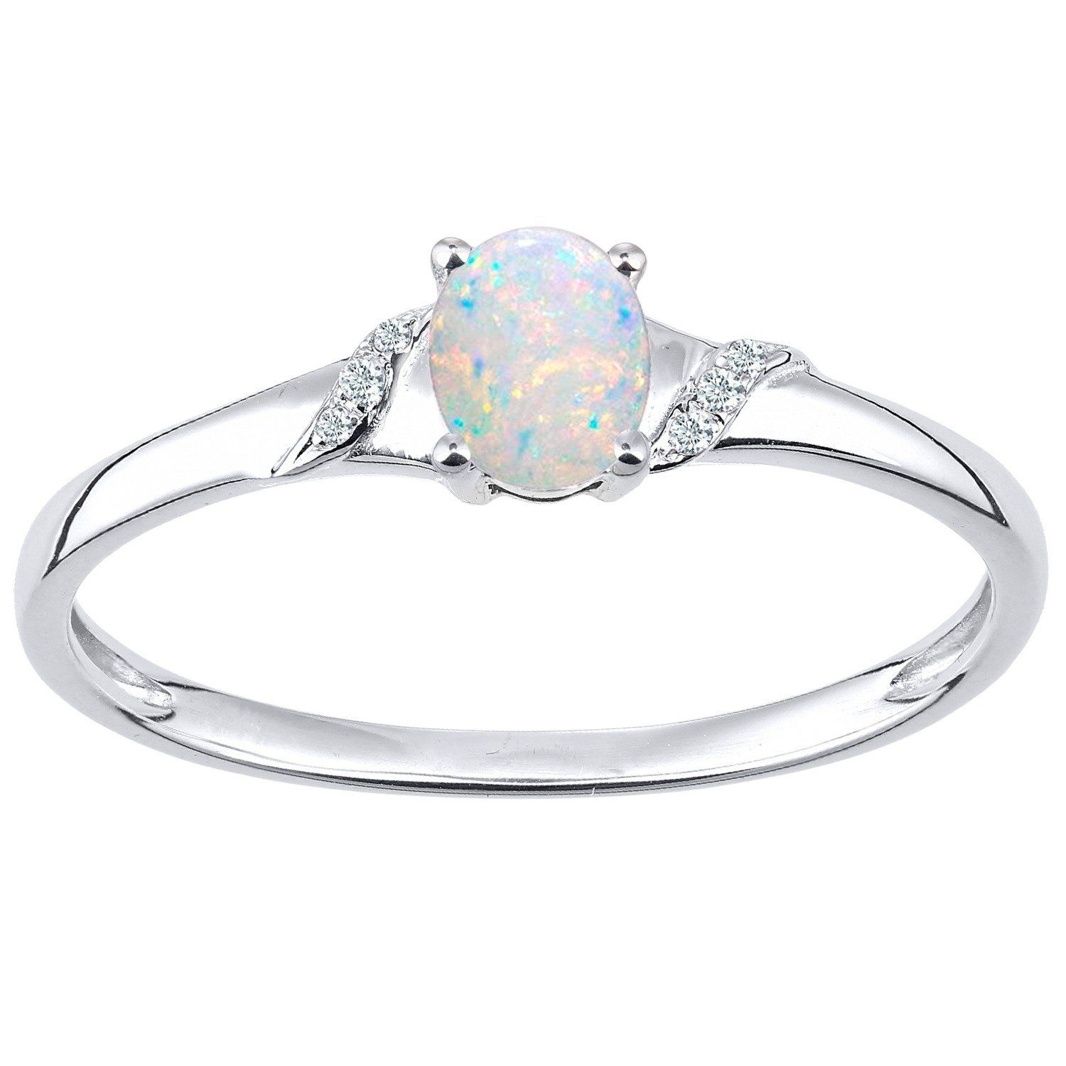 9ct White Gold Oval Opal and Diamond Shoulders Engagement Ring