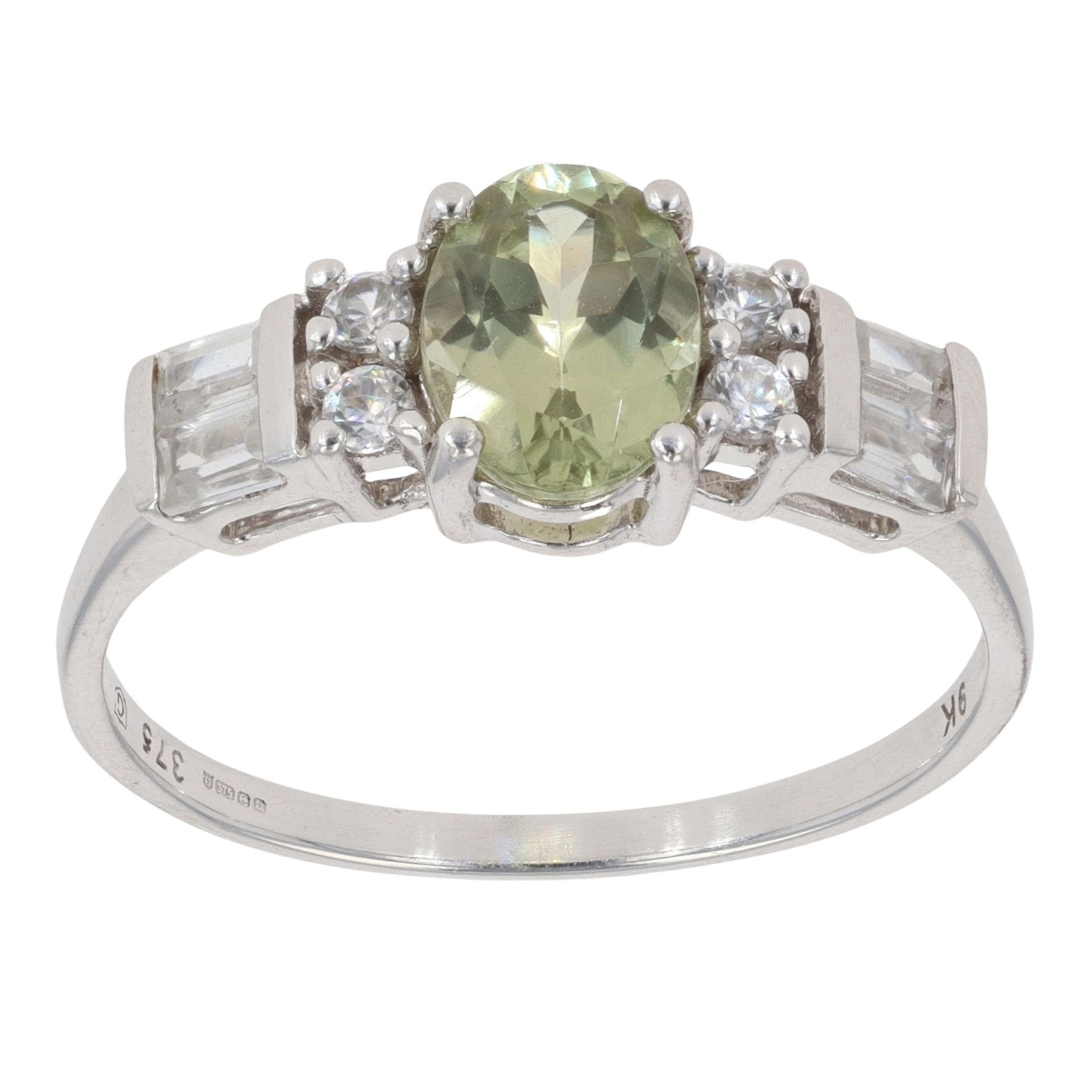 9ct White Gold Peridot And Cubic Zirconia Ring