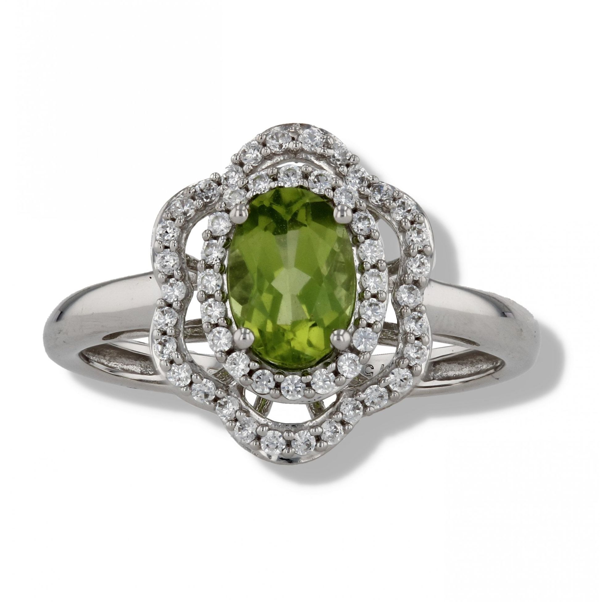 9ct White Gold Peridot And Cubic Zirconia Ring