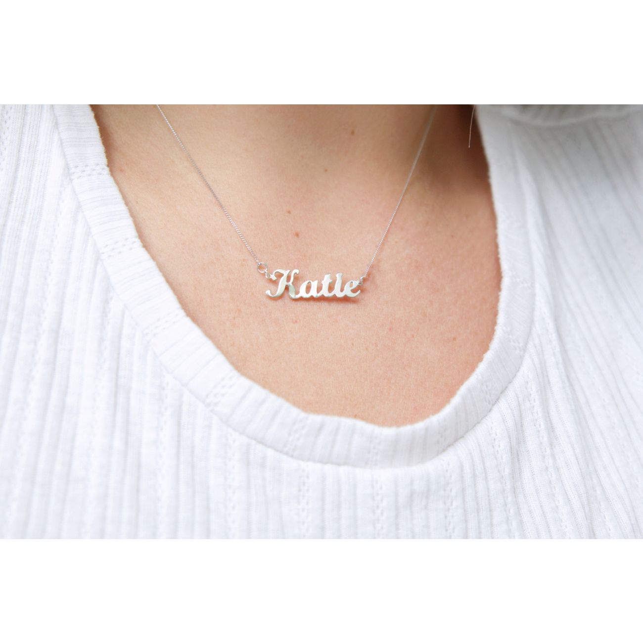 9ct White Gold Personalised Script Name Necklace