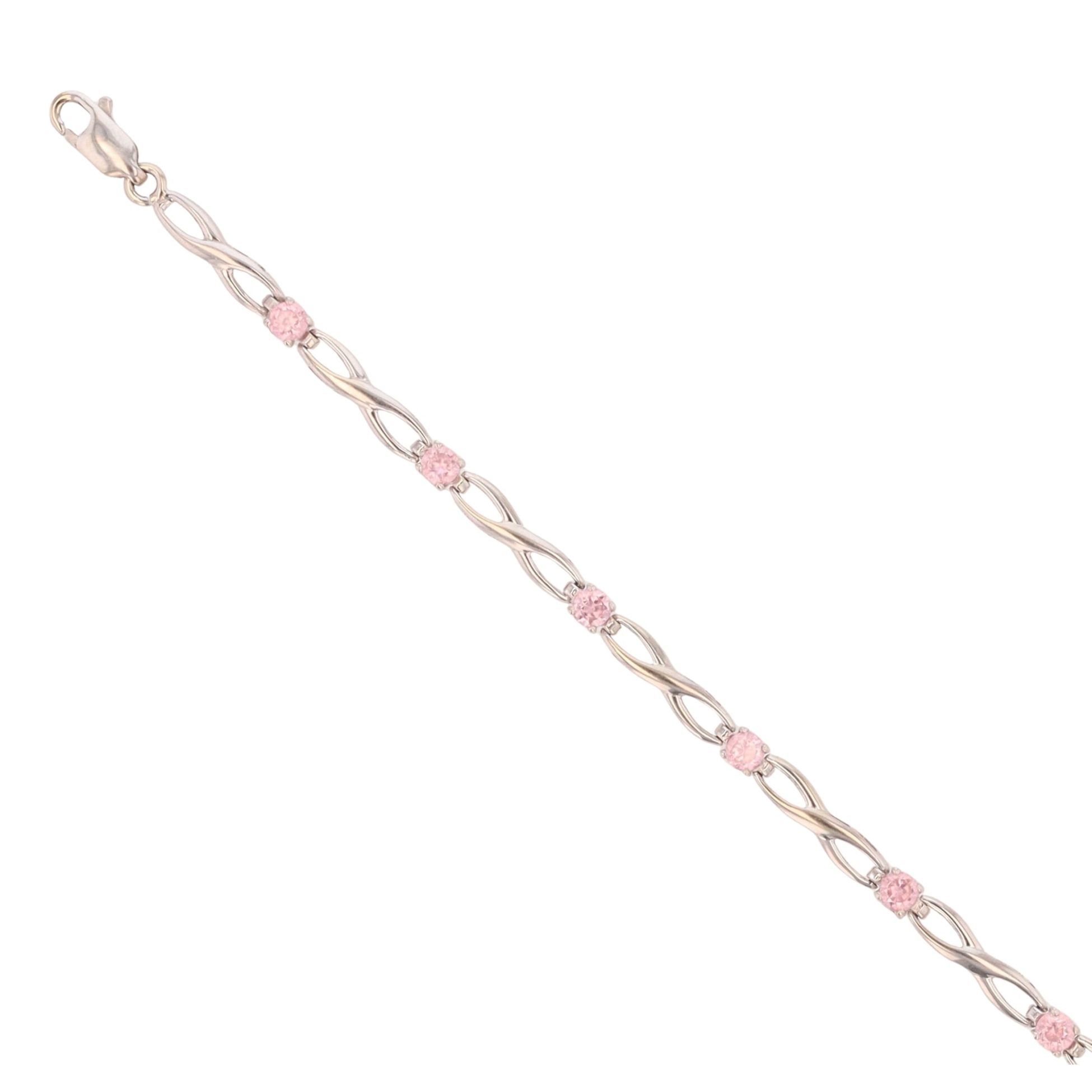 9ct White Gold Pink Cubic Zirconia Bracelet 7"