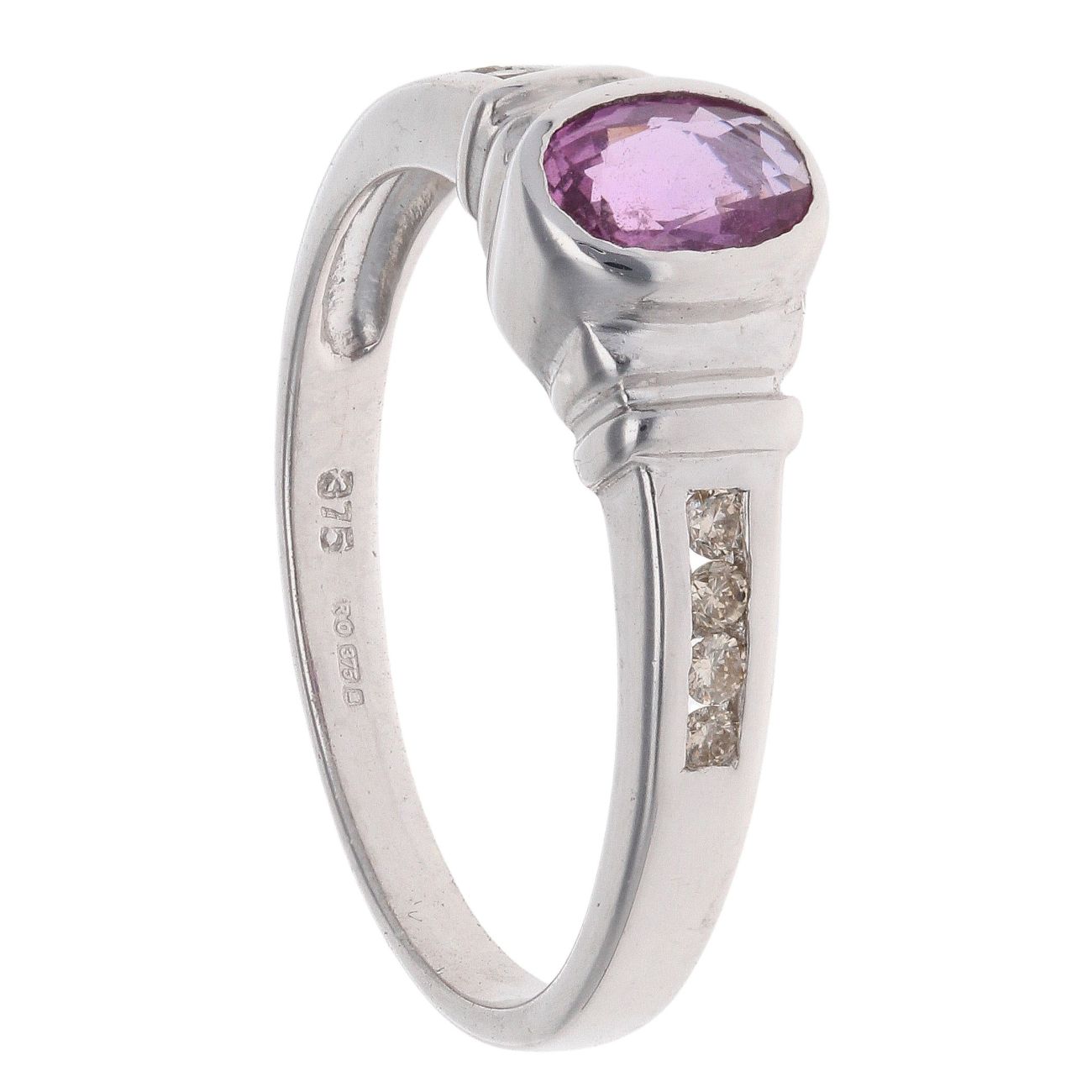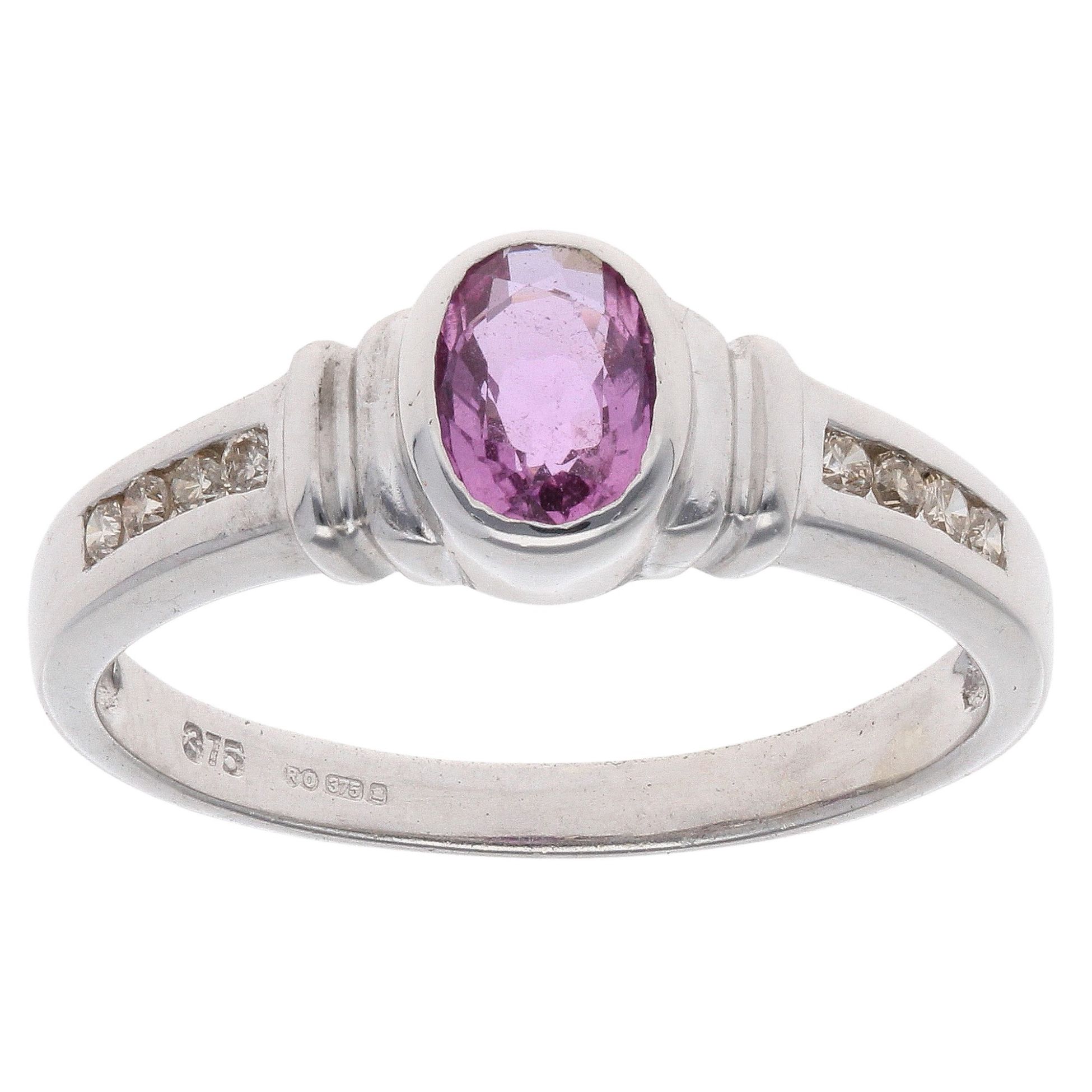 9ct White Gold Pink Sapphire And 0.15ct Diamond Solitaire Ring