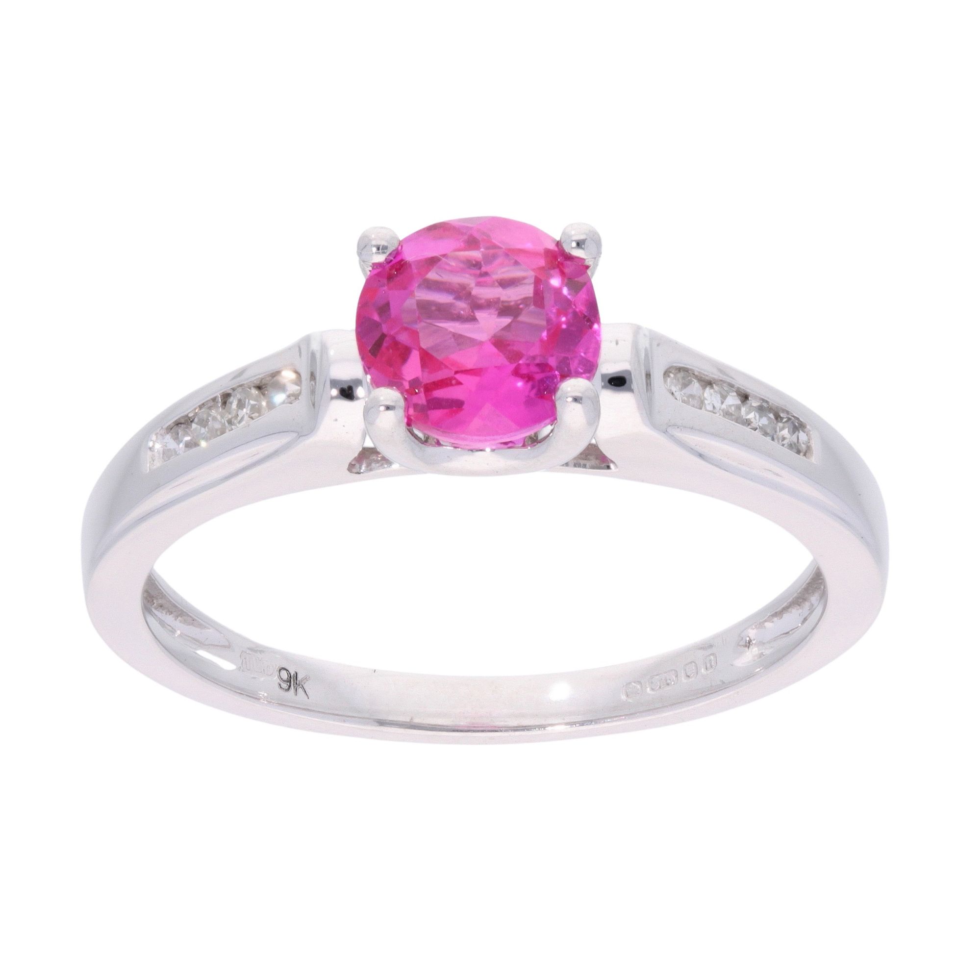 9ct White Gold Pink Sapphire and Diamond Circular Ring