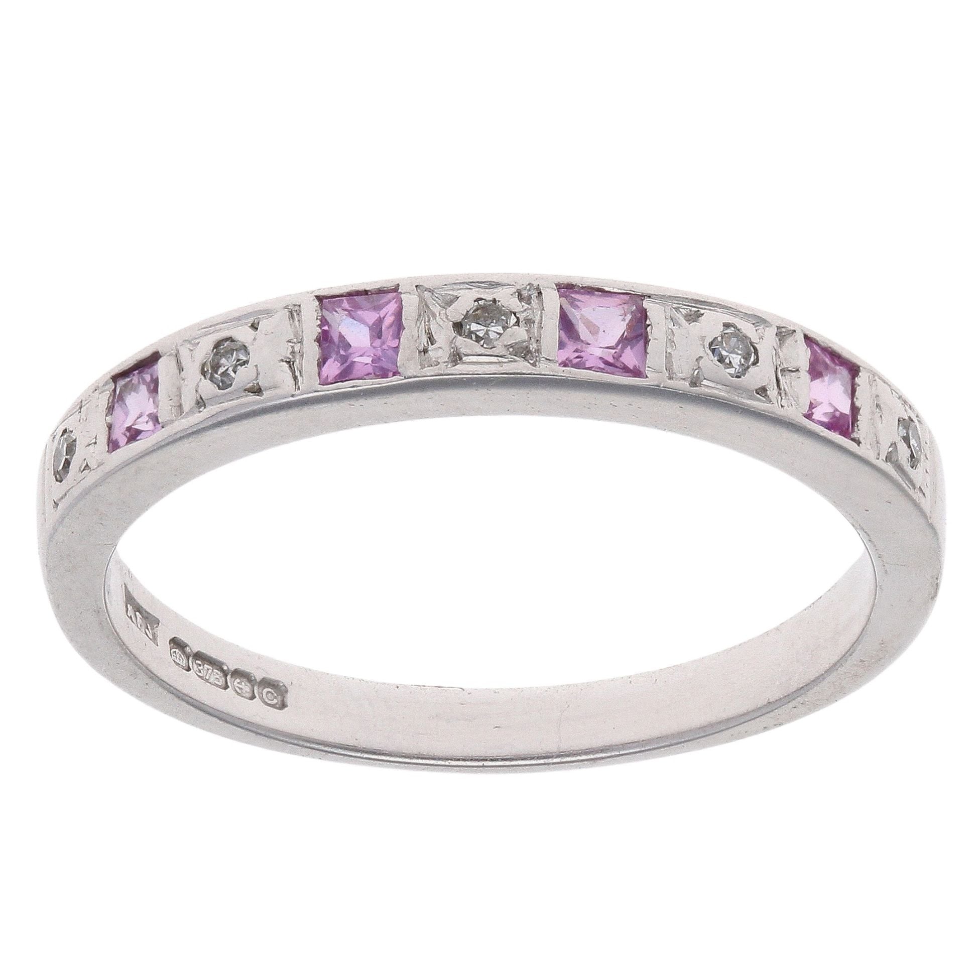 9ct White Gold Pink Topaz And 0.05ct Diamond Ring