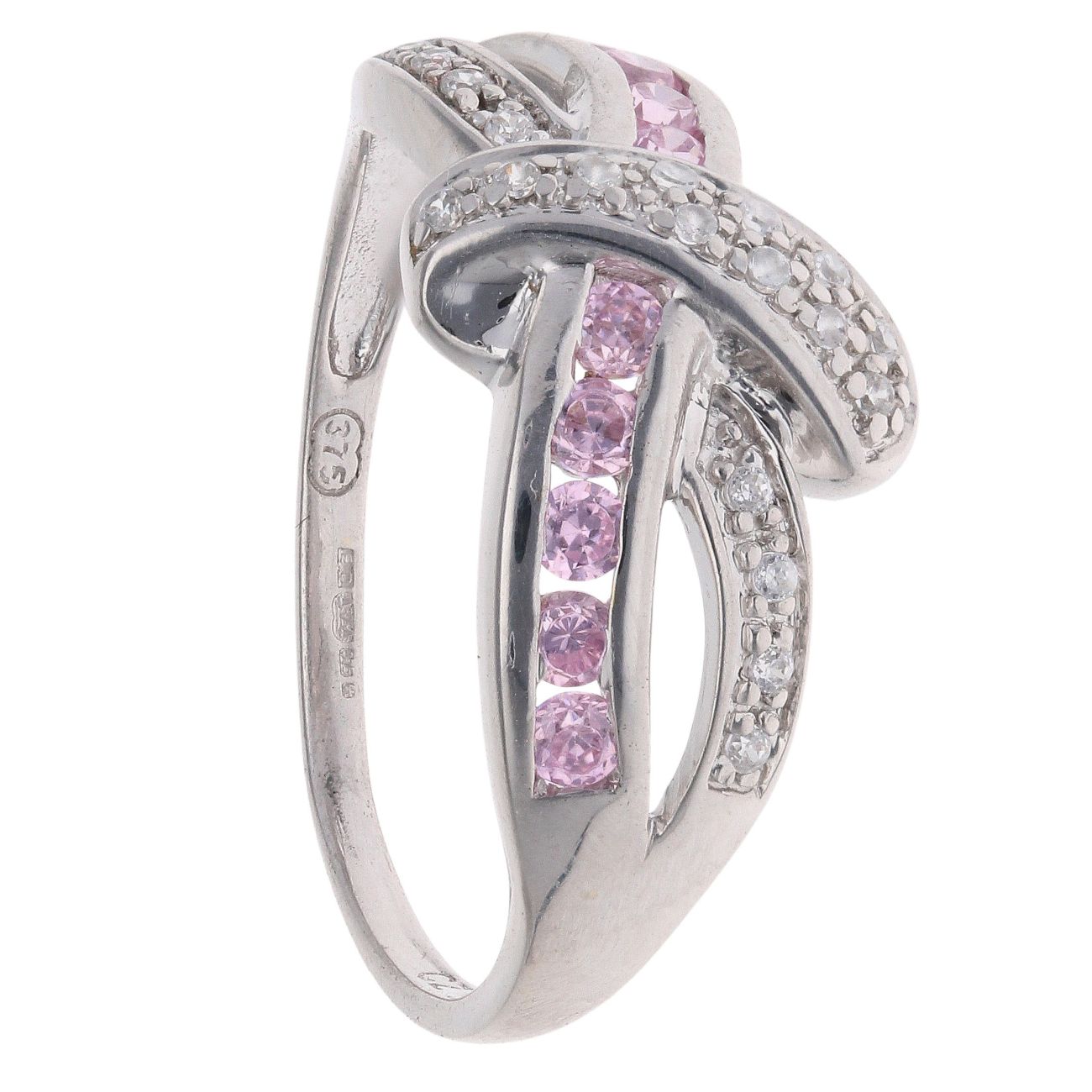 9ct White Gold Pink Topaz And Cubic Zirconia Crossover Ring