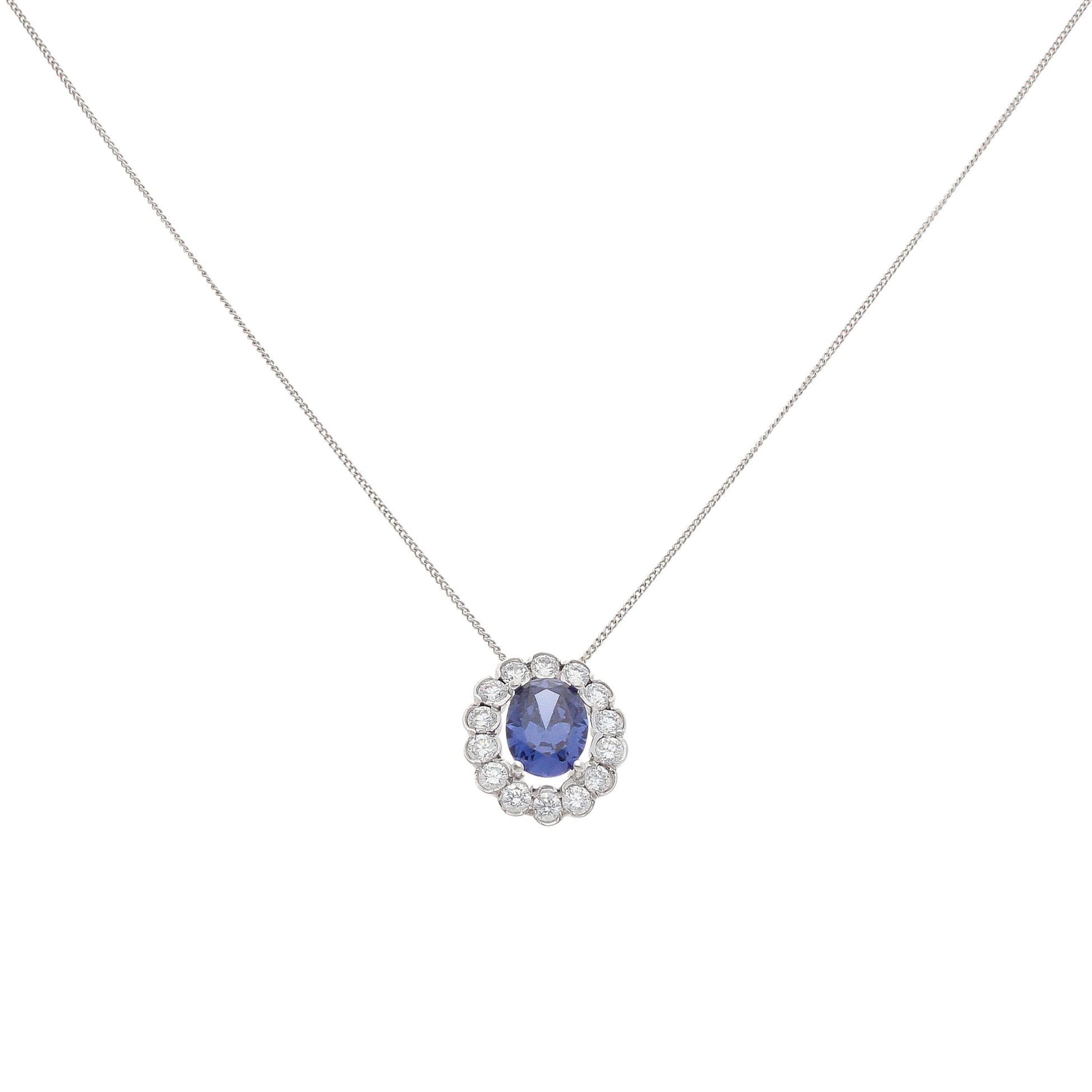 9ct White Gold Purple Gemstone and Cubic Zirconia Cluster Pendant and Chain 18"