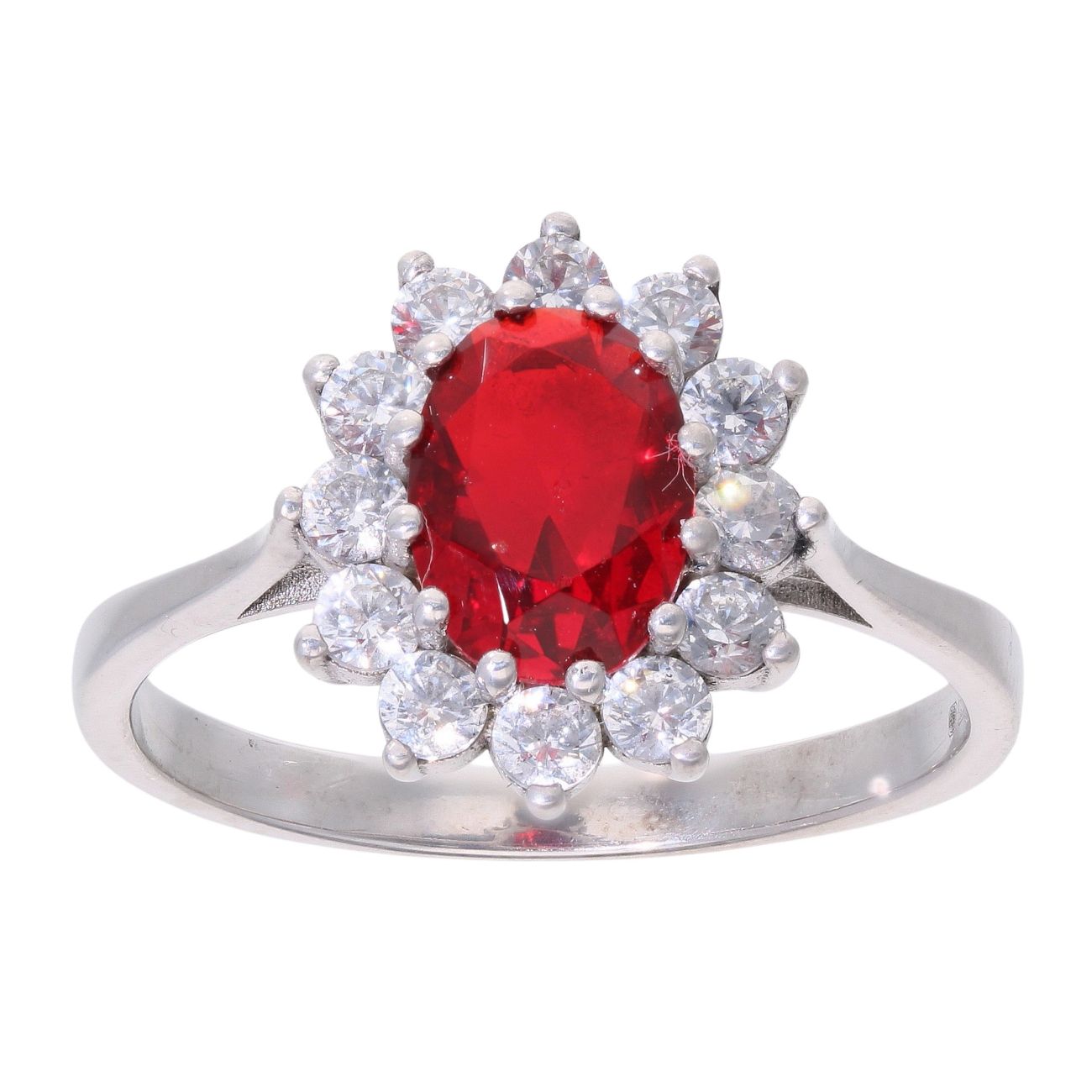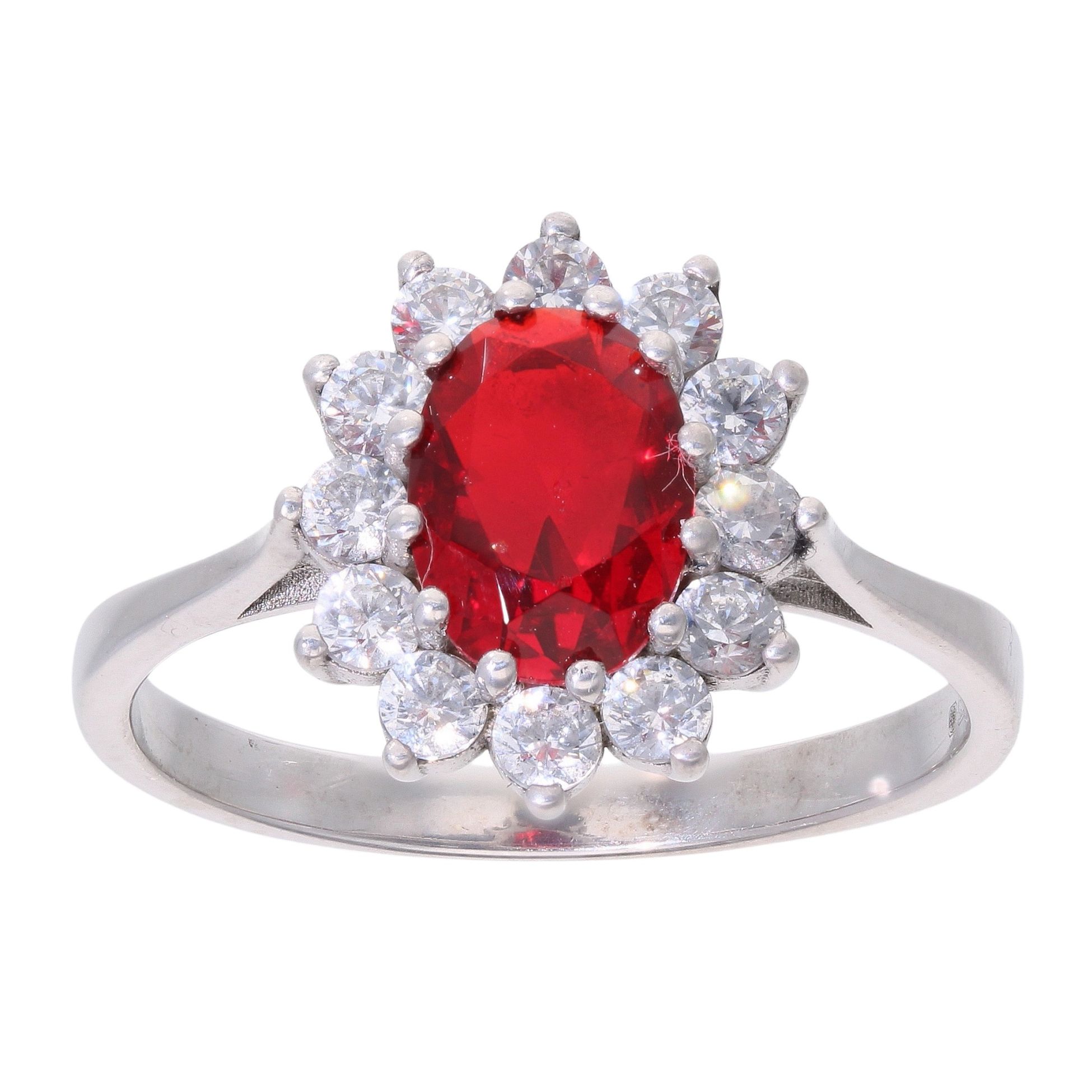 9ct White Gold Red Gemstone and Cubic Zirconia Cluster Ring