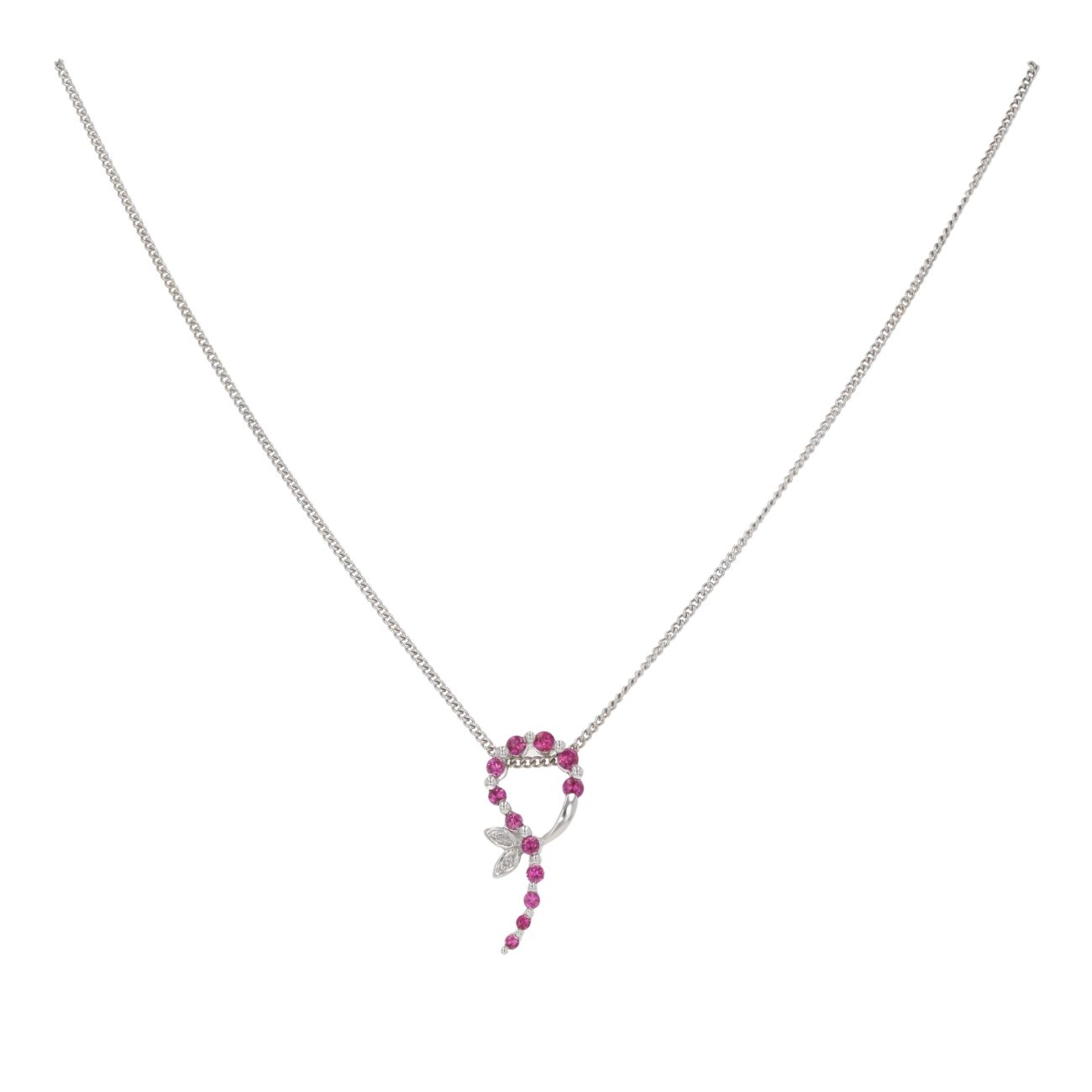 9ct White Gold Ruby and 0.01ct Diamond Fancy Pendant and Chain 18"