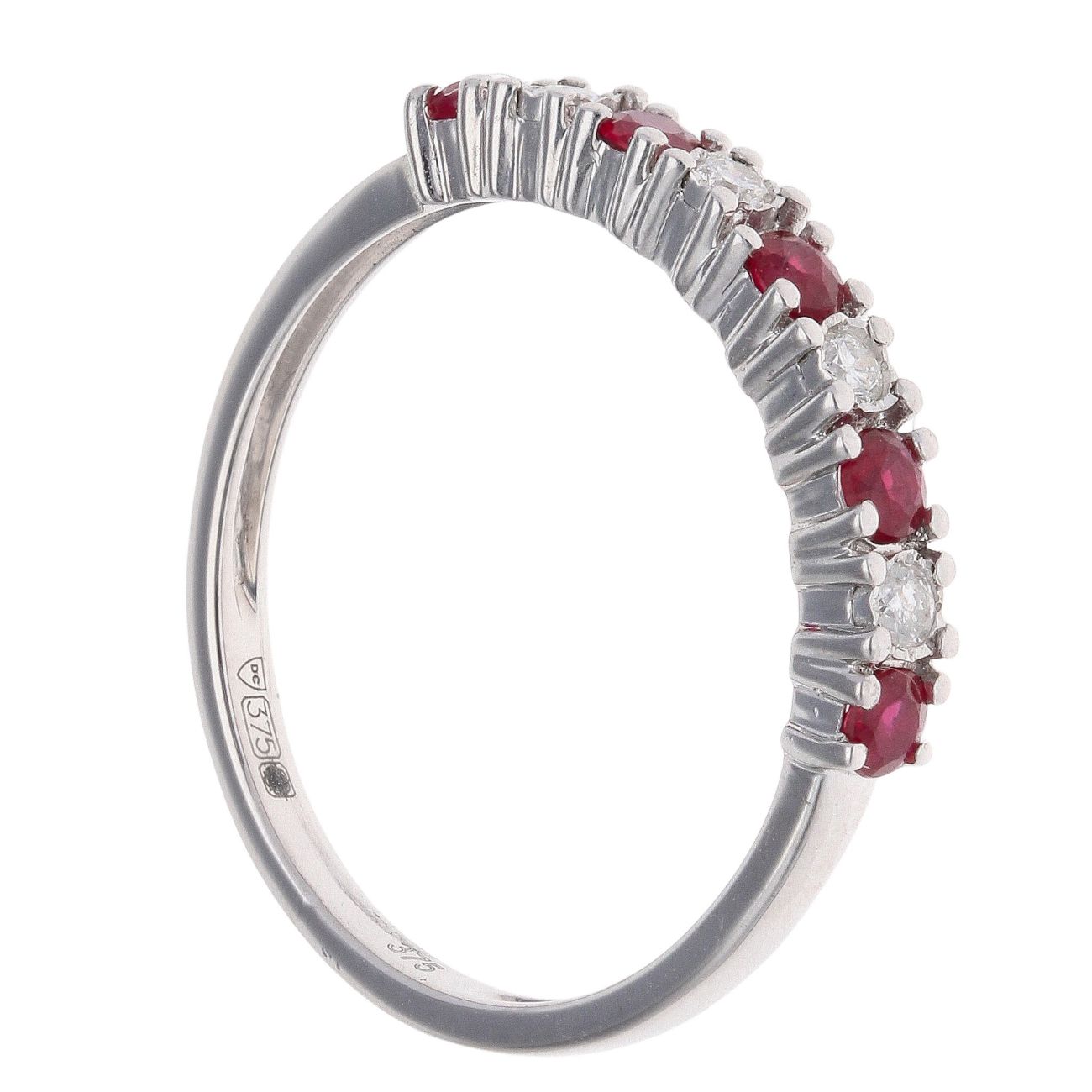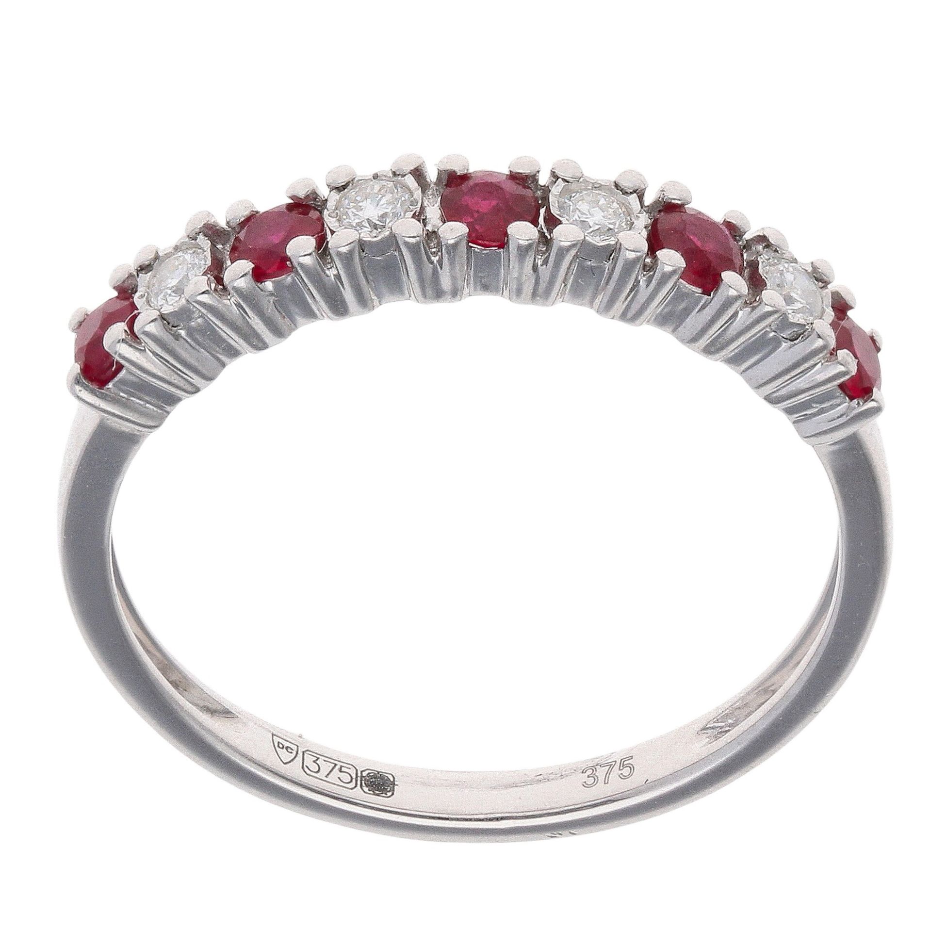 9ct White Gold Ruby and 0.08ct Diamond Half Eternity Ring