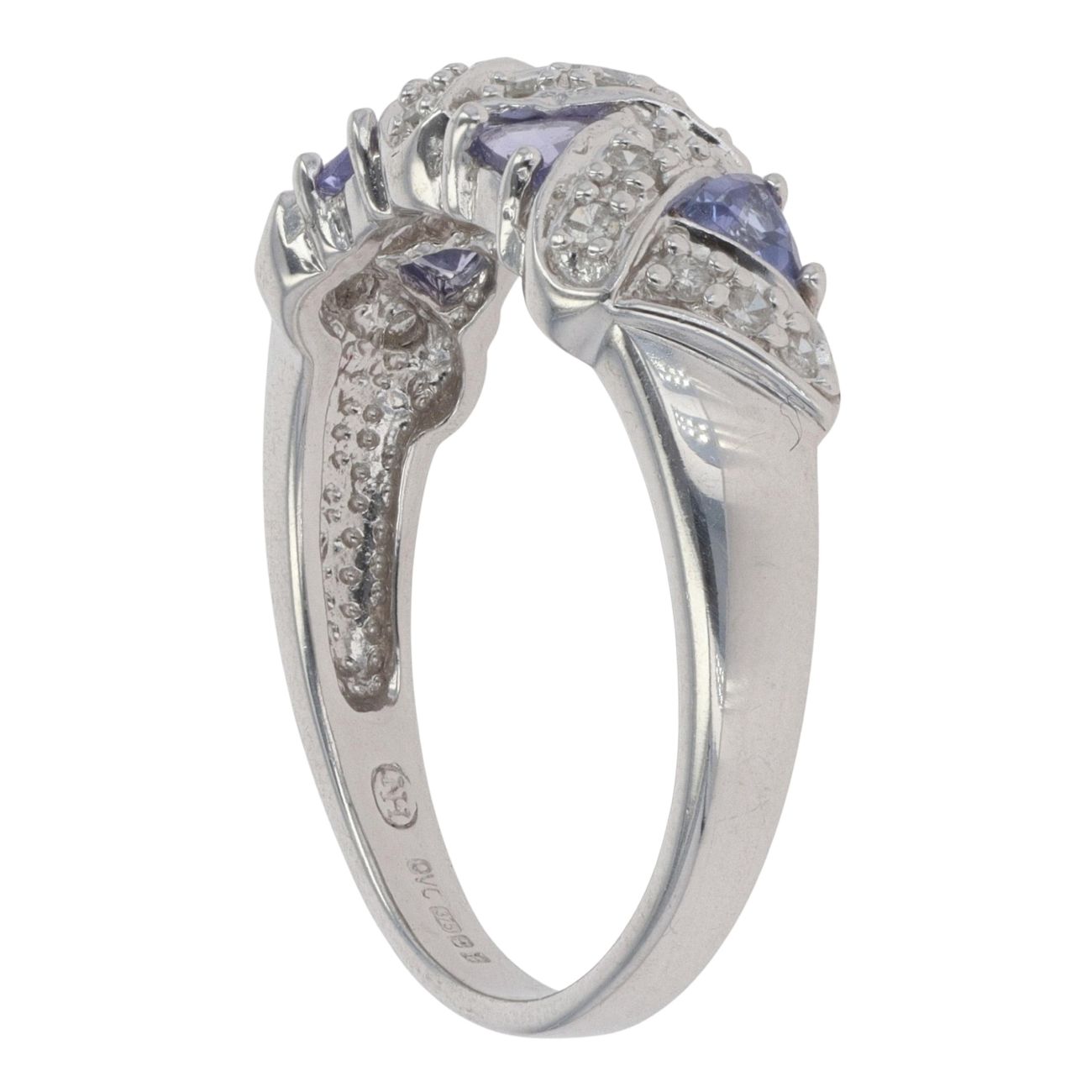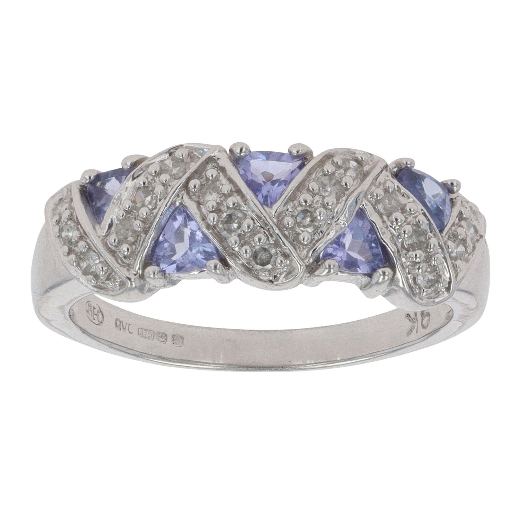 9ct White Gold Tanzanite and 0.15ct Diamond Cluster Ring