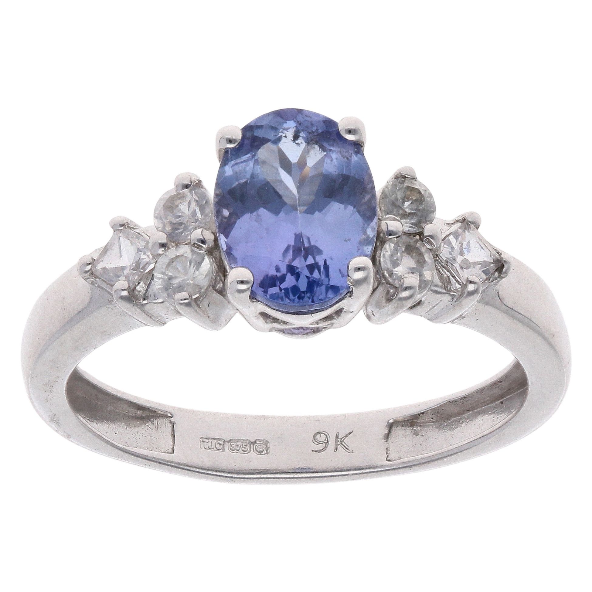 9ct White Gold Tanzanite And Cubic Zirconia Ring