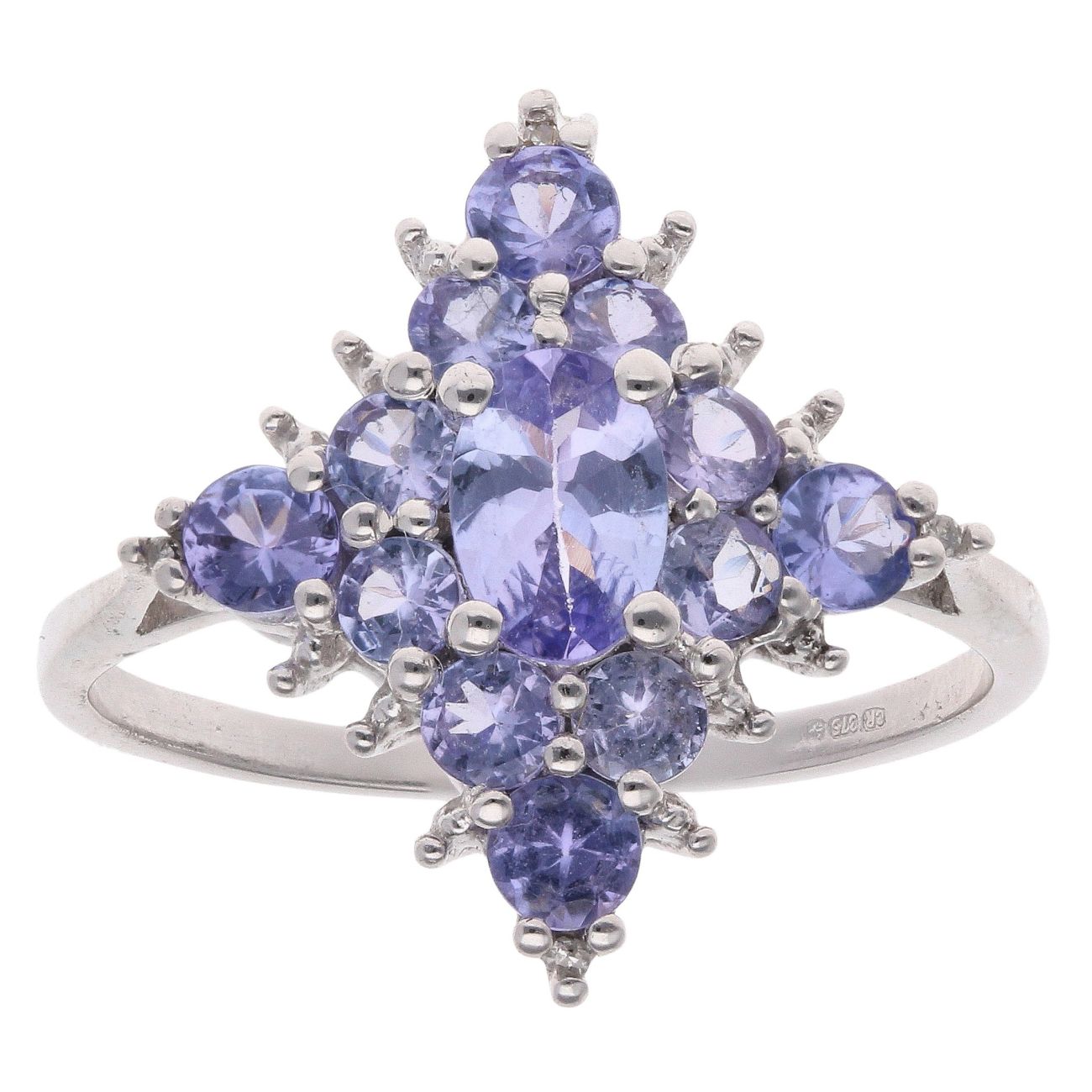 9ct White Gold Tanzanite Cluster Ring