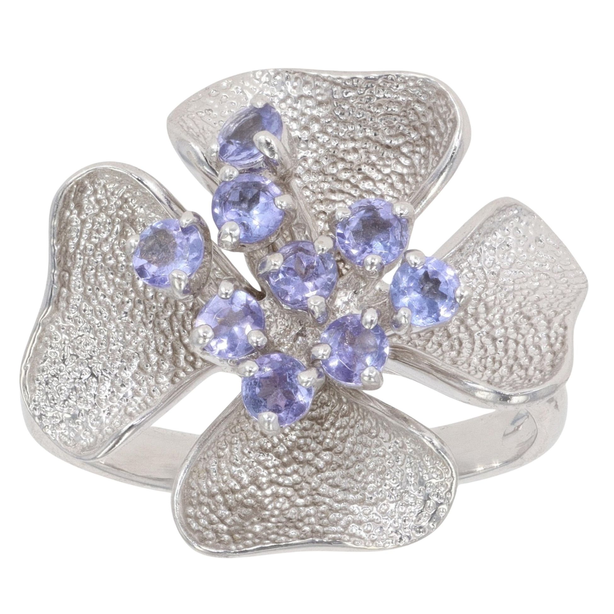 9ct White Gold Tanzanite Flower Ring9ct White Gold Tanzanite Flower Ring