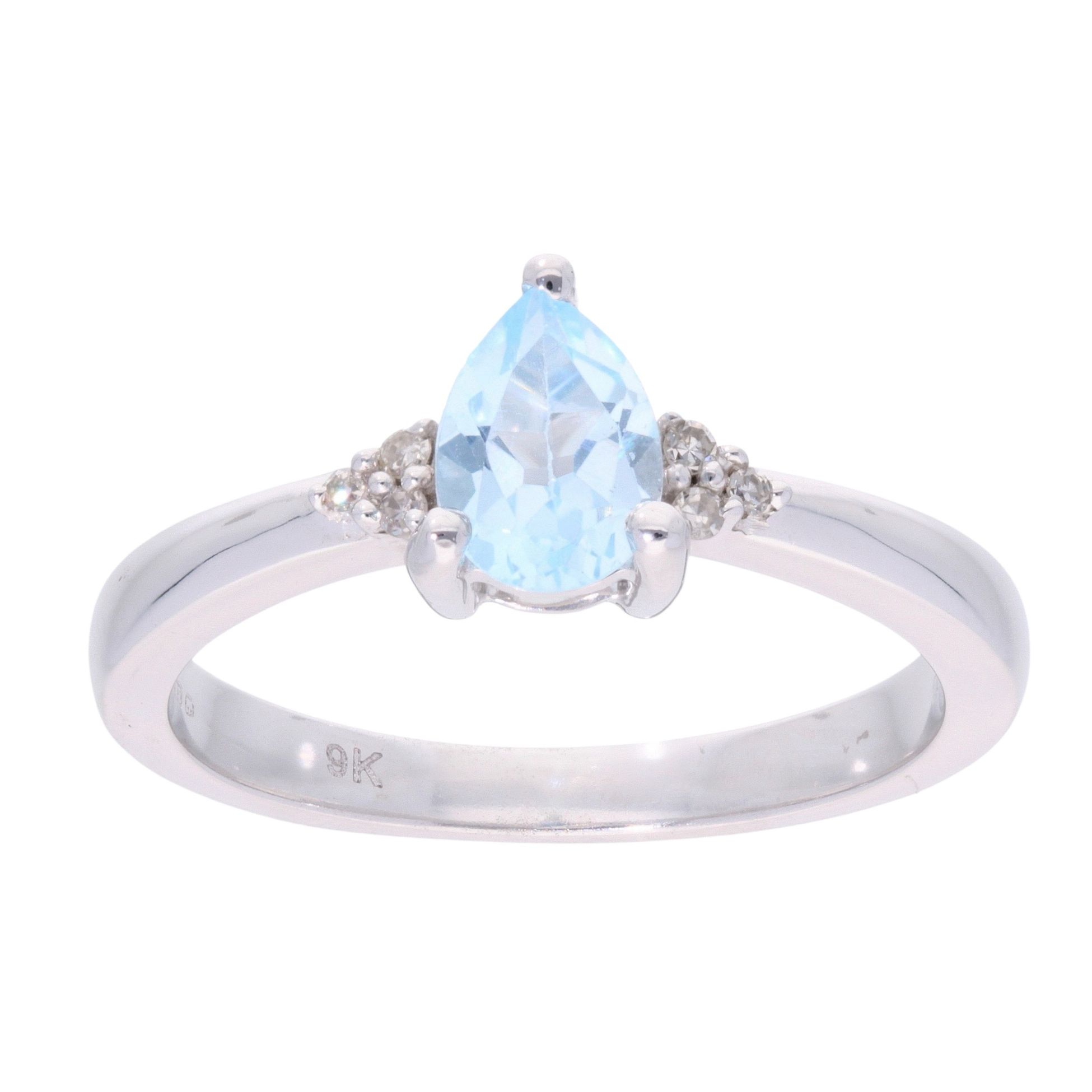 9ct White Gold Topaz and Diamond Pear Ring