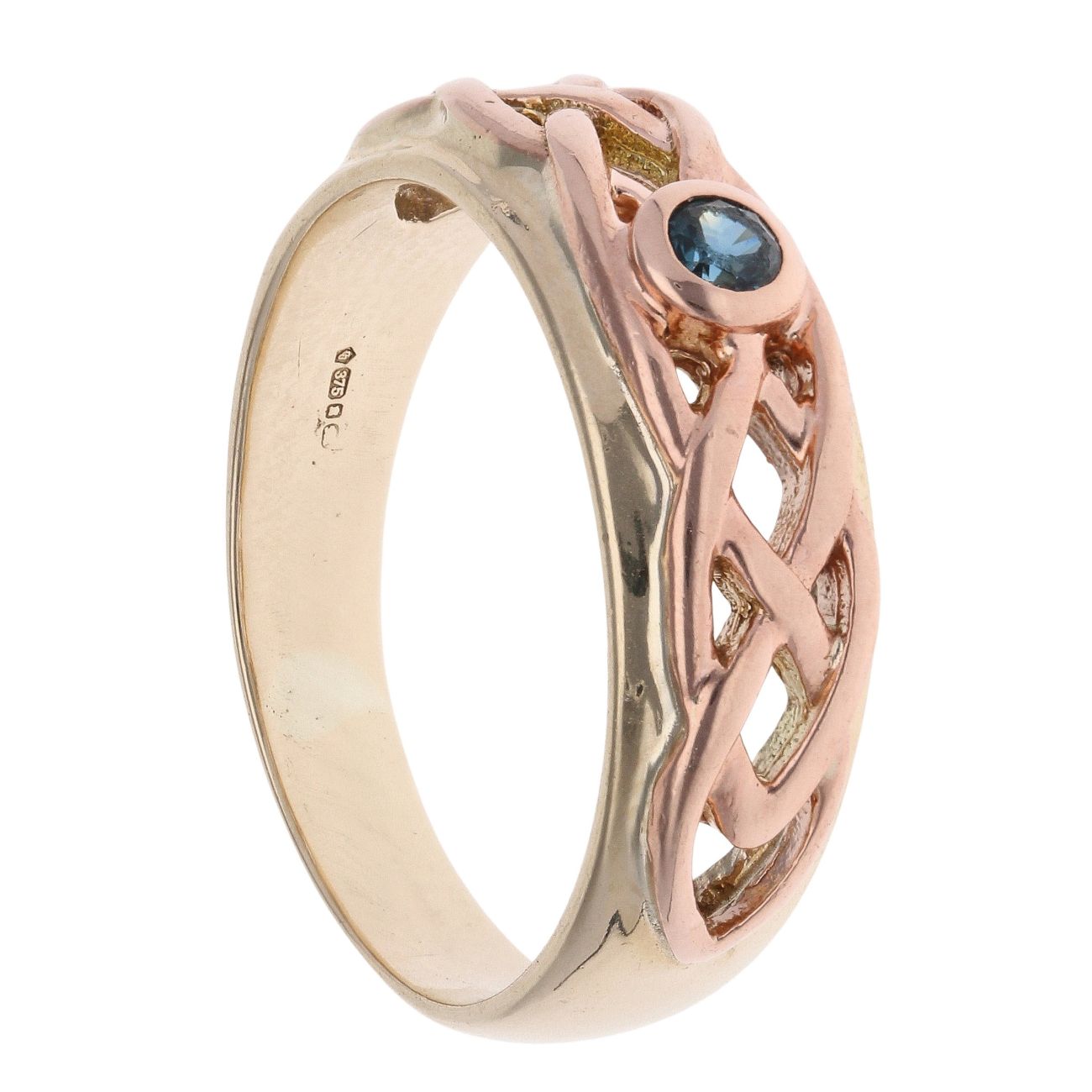9ct Yellow And Rose Gold Blue Gemstone Celtic Clogau Ring