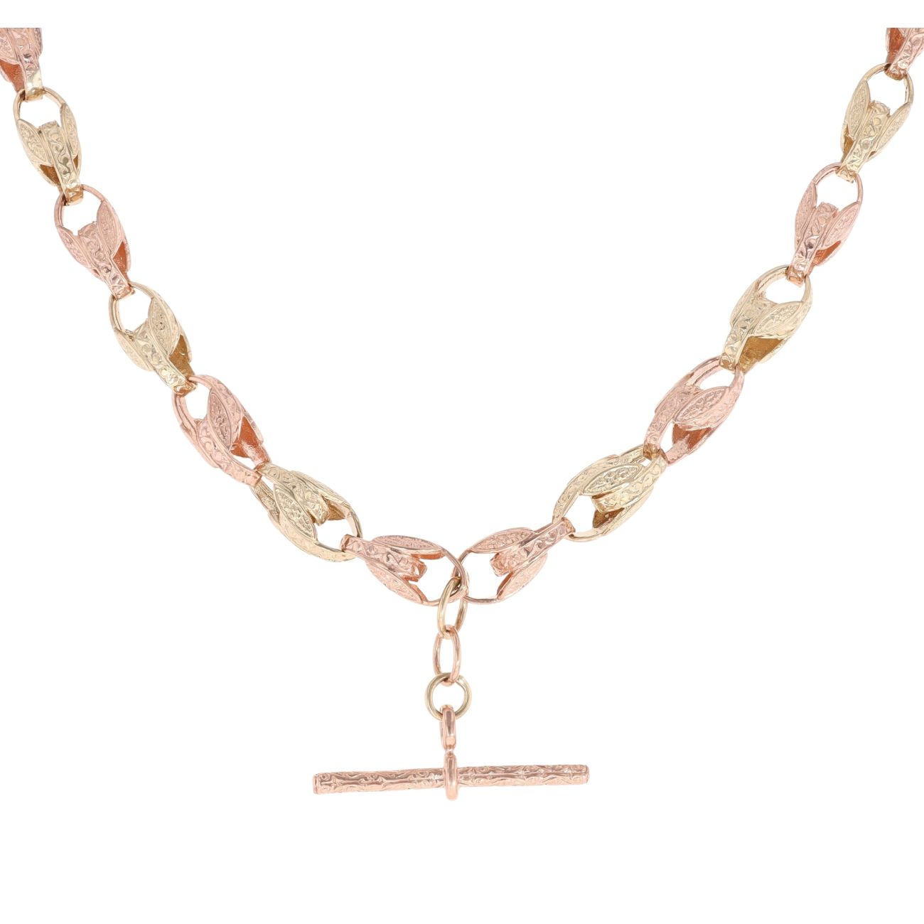 9ct Yellow And Rose Gold Patterned Tulip Chain 22"