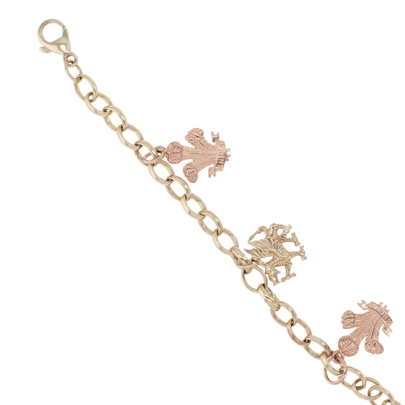 9ct Yellow And Rose Gold Welsh Feathers And Dragon Charm Bracelet 8"